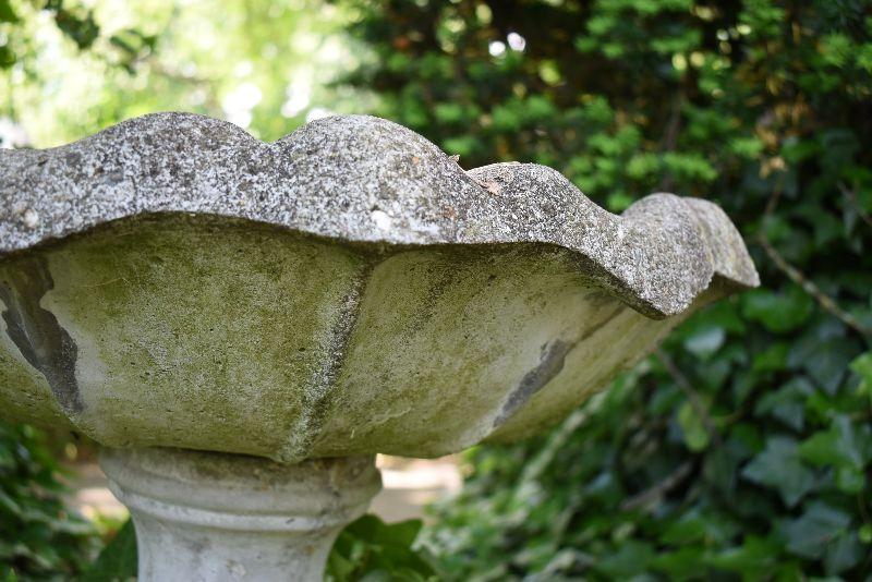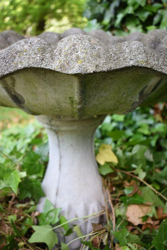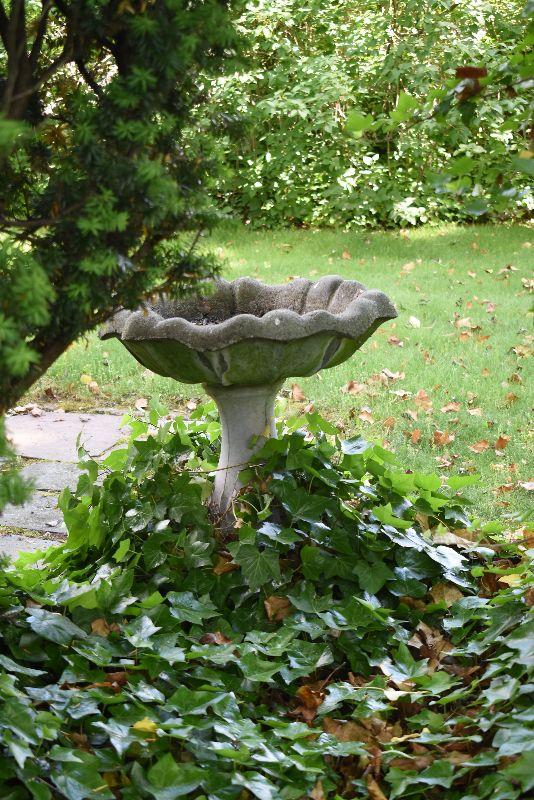 Cement birdbath, comes apart for moving. 23x23x27. Heavy, bring help to move