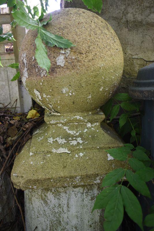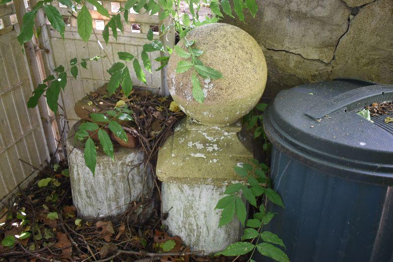 Cement garden ball and two cement stands. Heavy, bring help to move