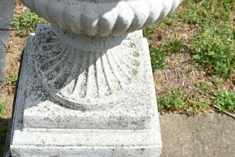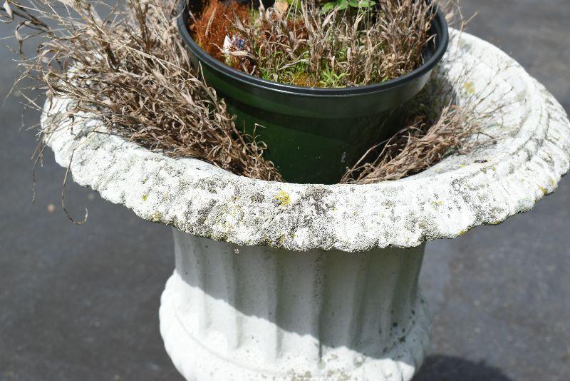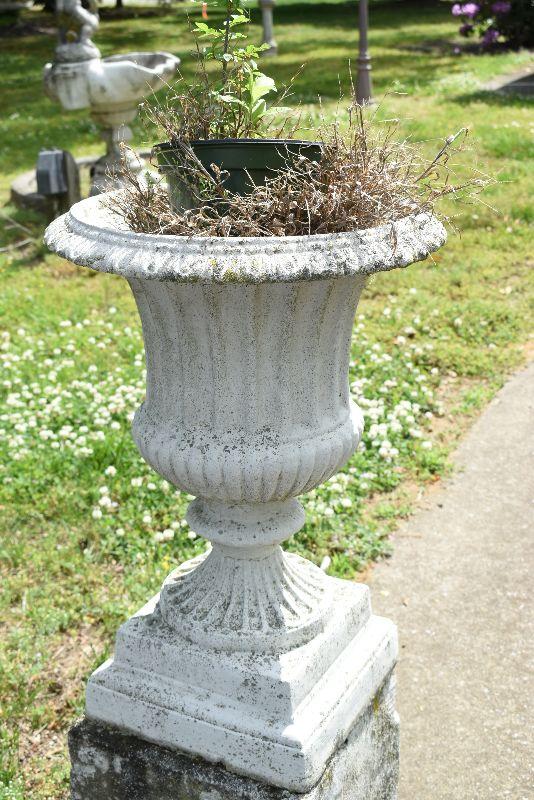 Cement planter, 17x17x24. Nicely weathered. Heavy, bring help to move.