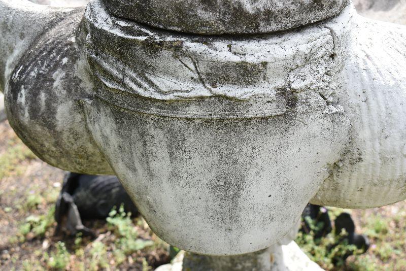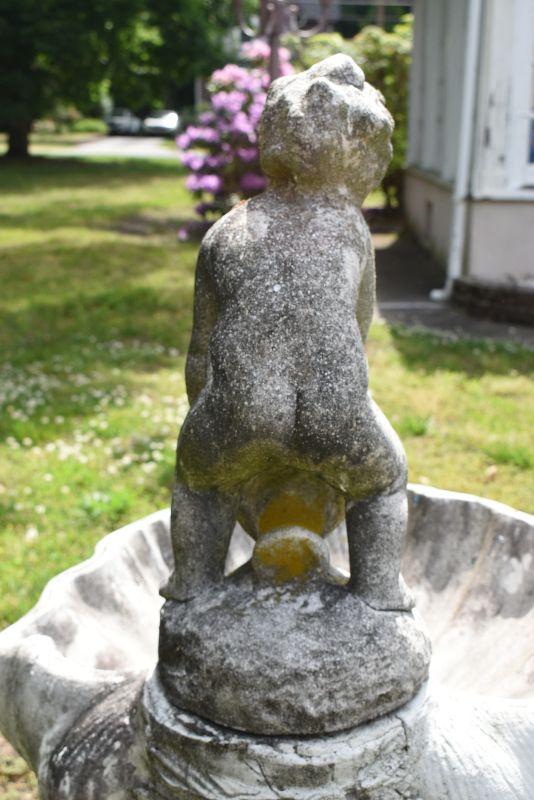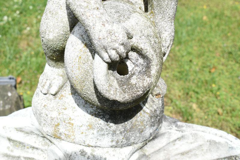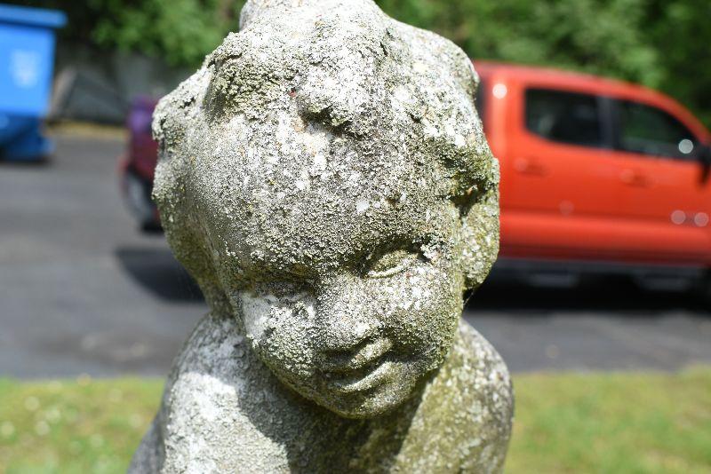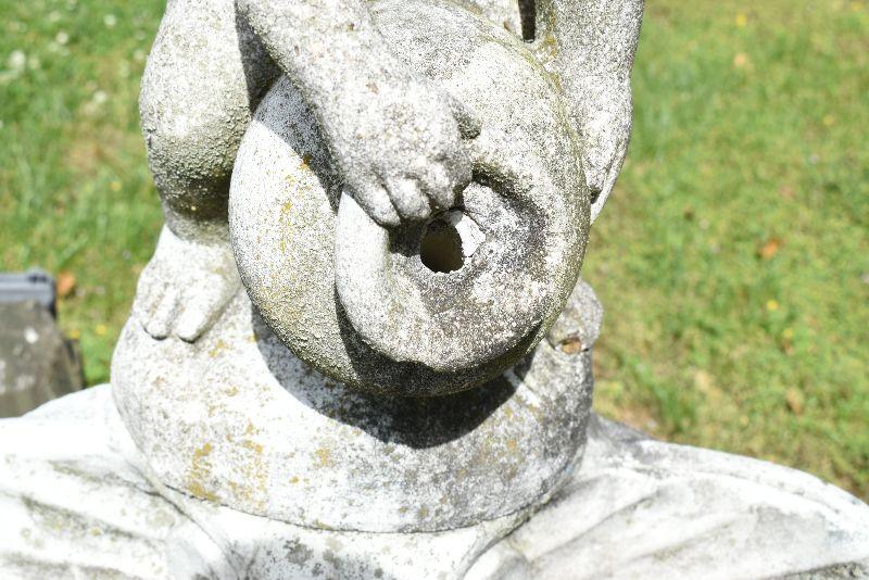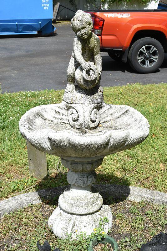 Cherub fountain, well weathered, but no chips. Does come apart for moving. 27x27x50. Heavy, bring help to move