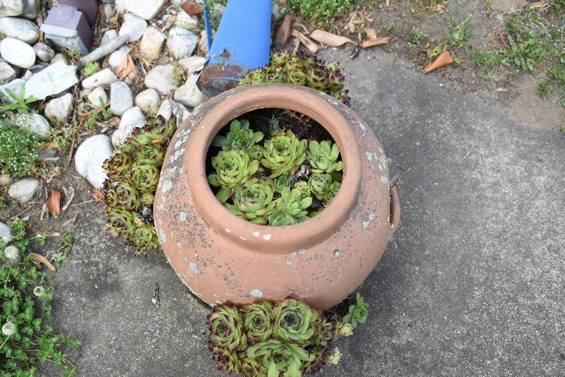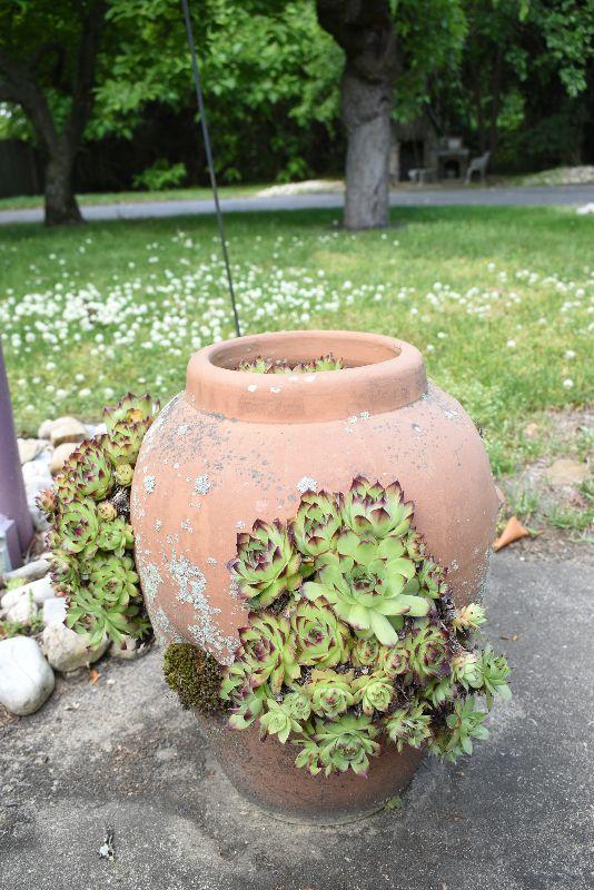 Terra cotta planter with succulent plants. 17x20x19 including plants.