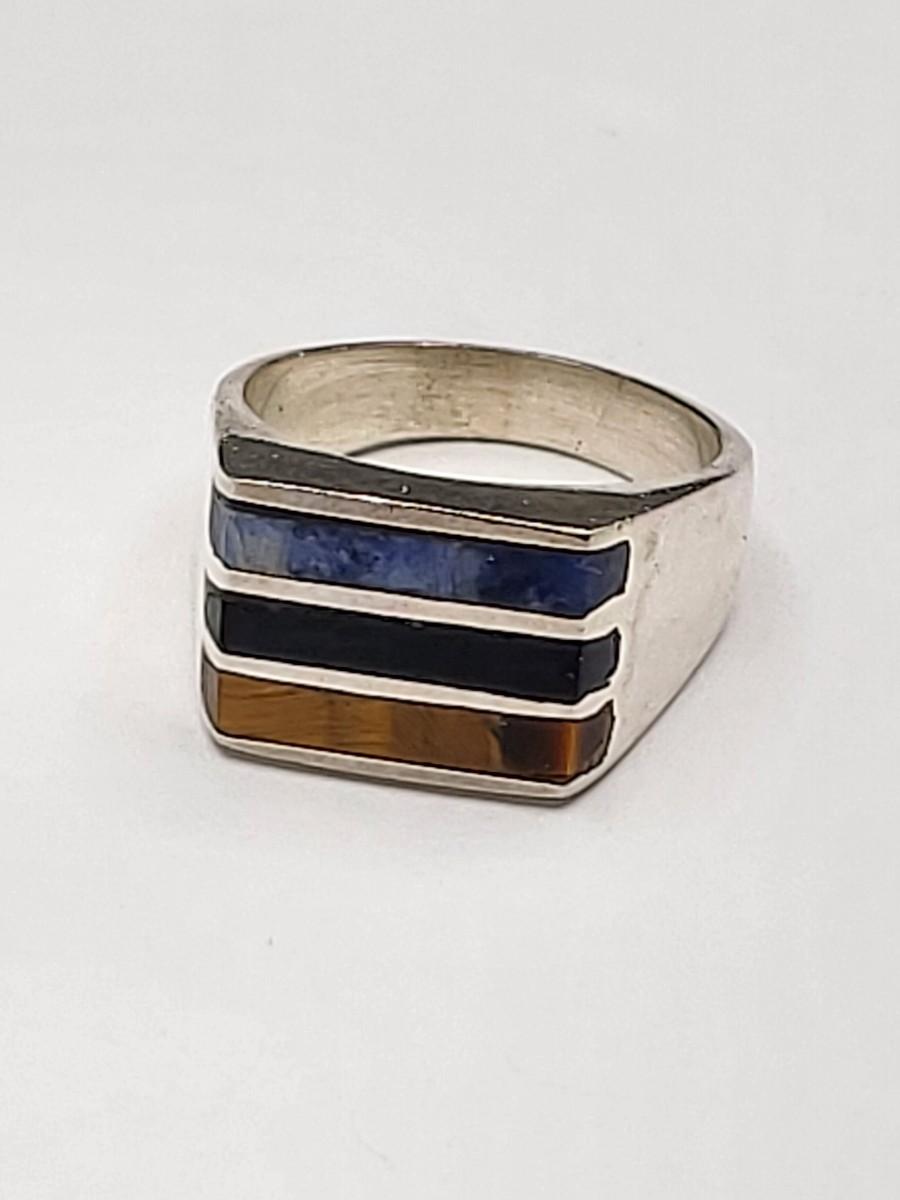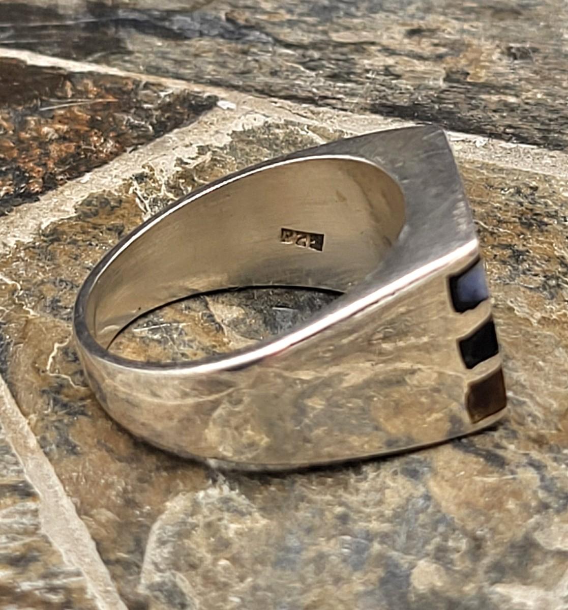 Outstanding Men's Vintage Mexico Multi-Stone Inlay Ring 15.3gr