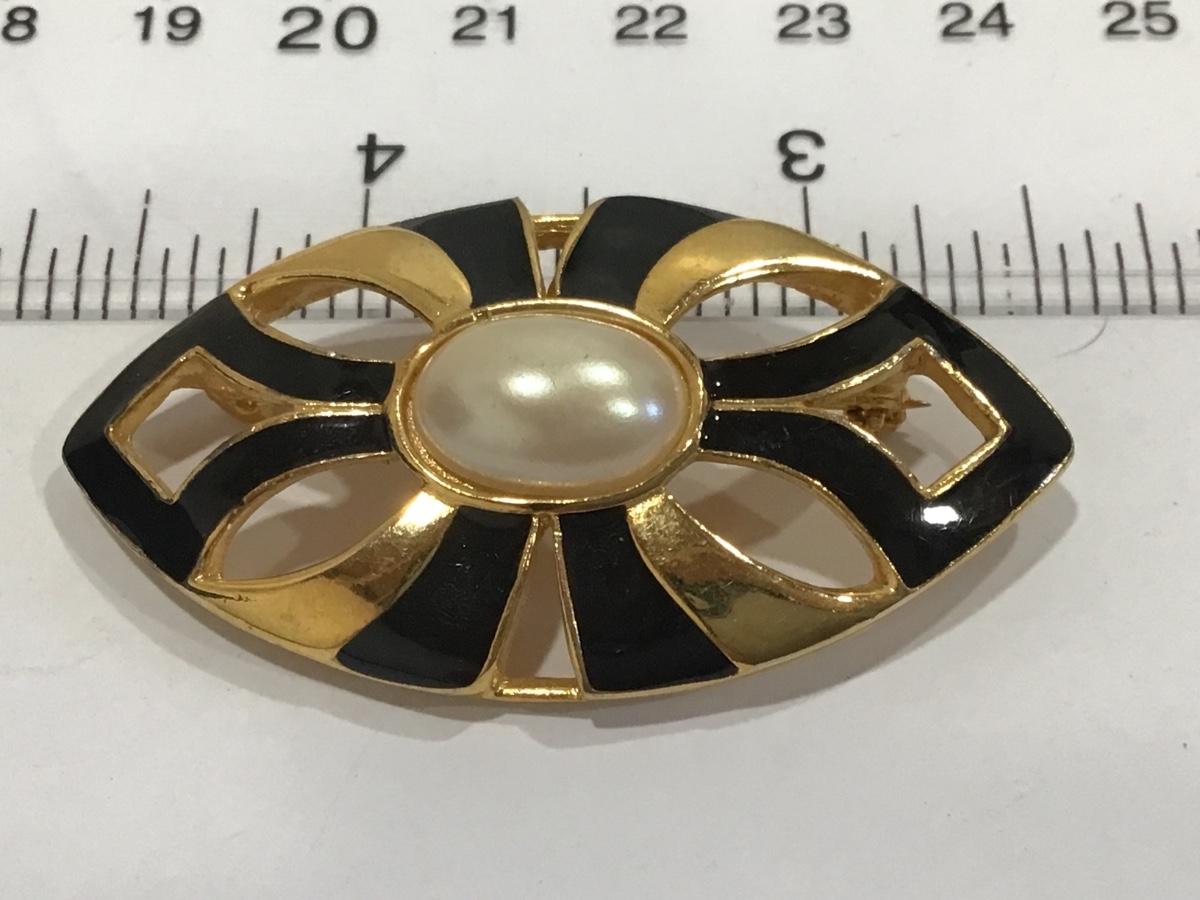 Oval Black Enamel Faux Pearl Brooch