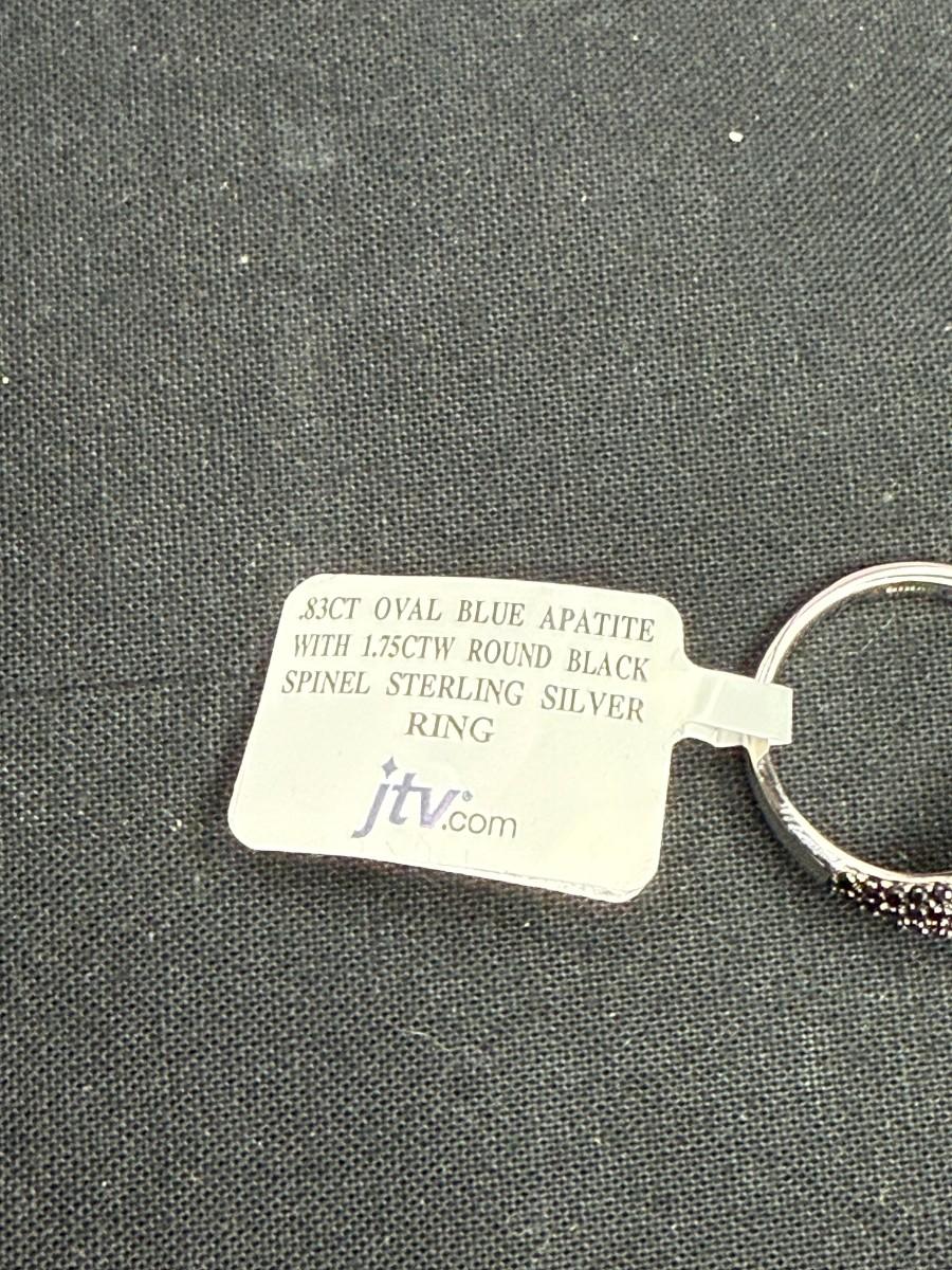 Oval Blue Apatite w/ 1.75CTW Round Black Spinel Sterling Silver