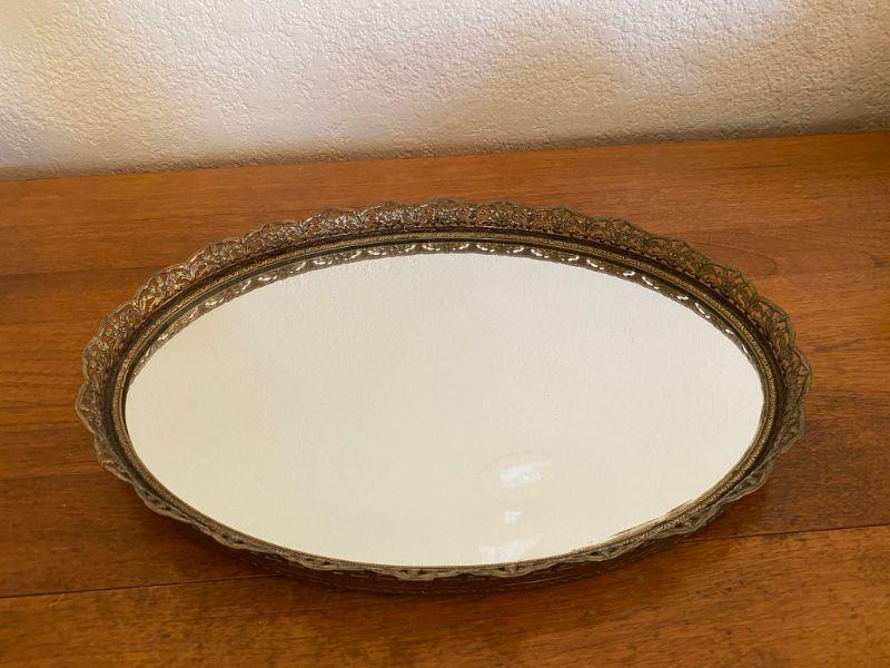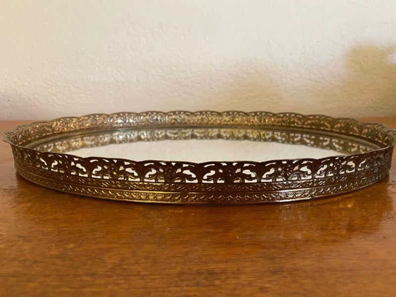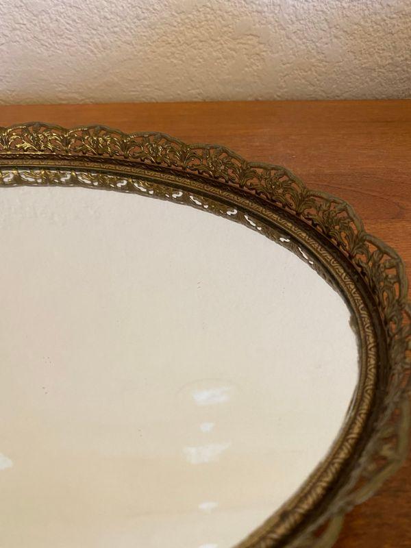 Oval Brass Rimmed Mirror Tray or Wall Hanging YD#019-0130