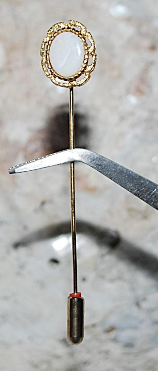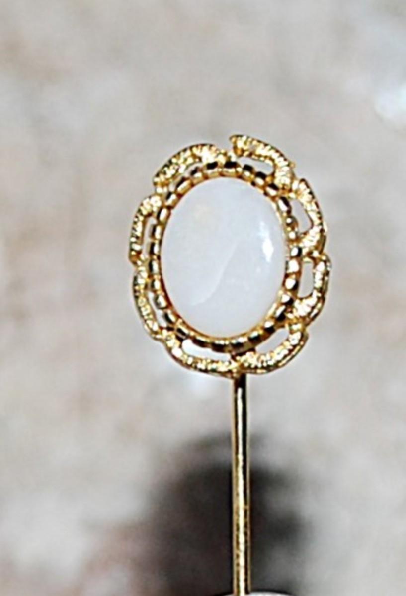 Oval Cabochon Stone PIN (3" L) with Gold Colored Surround & Pin Guard on a Gold Tone Setting