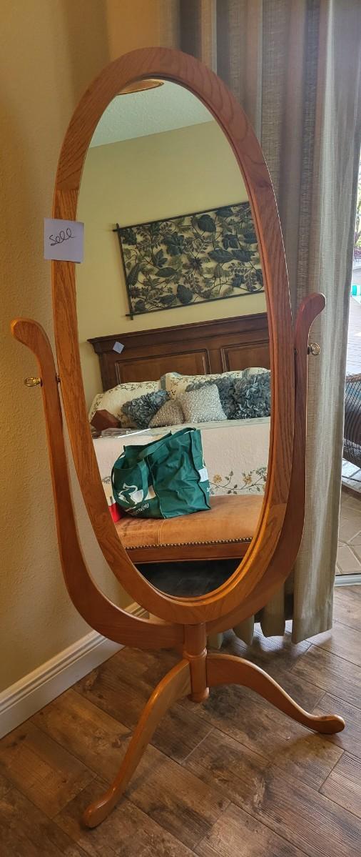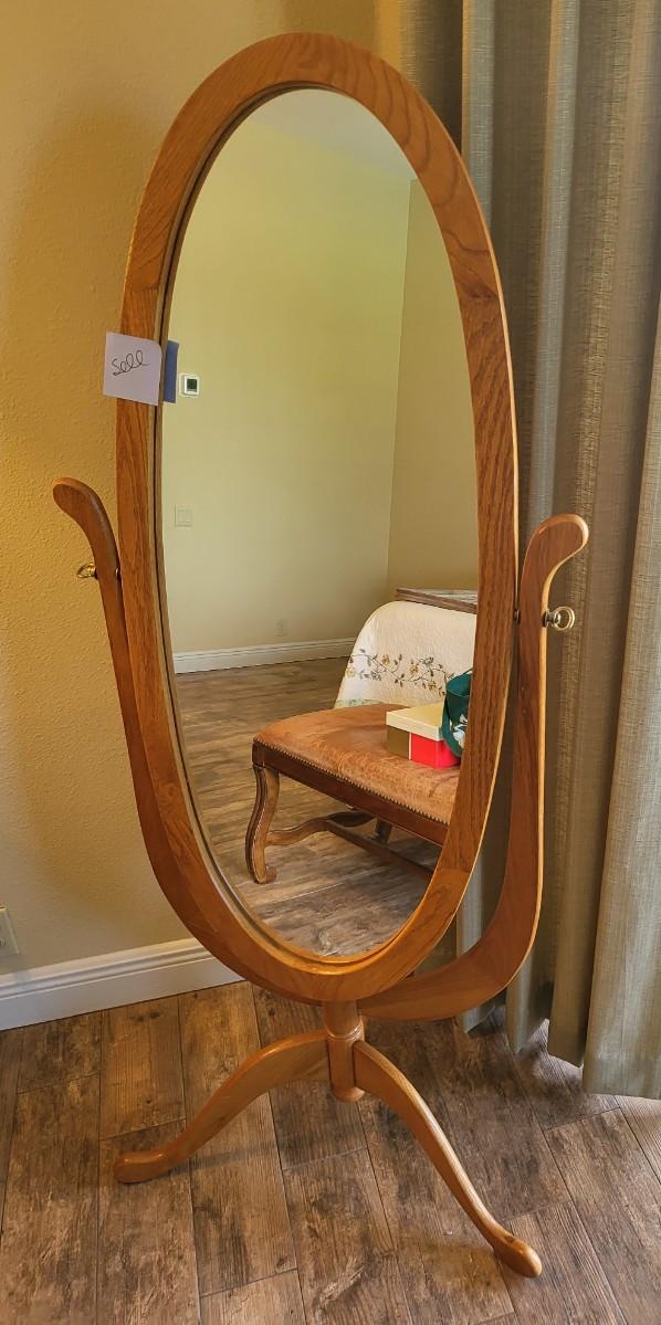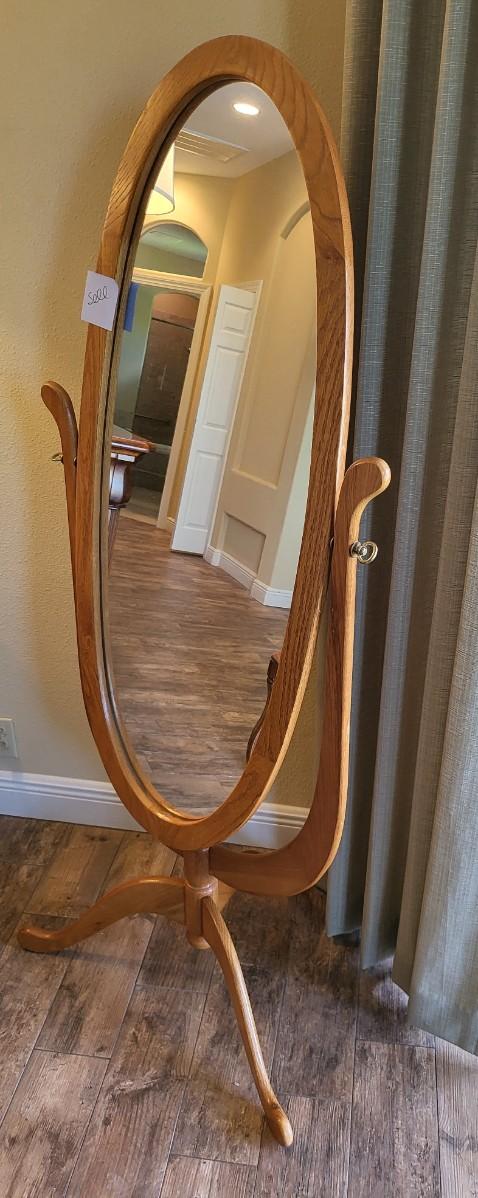 Oval Cheval Mirror with Pedestal Base