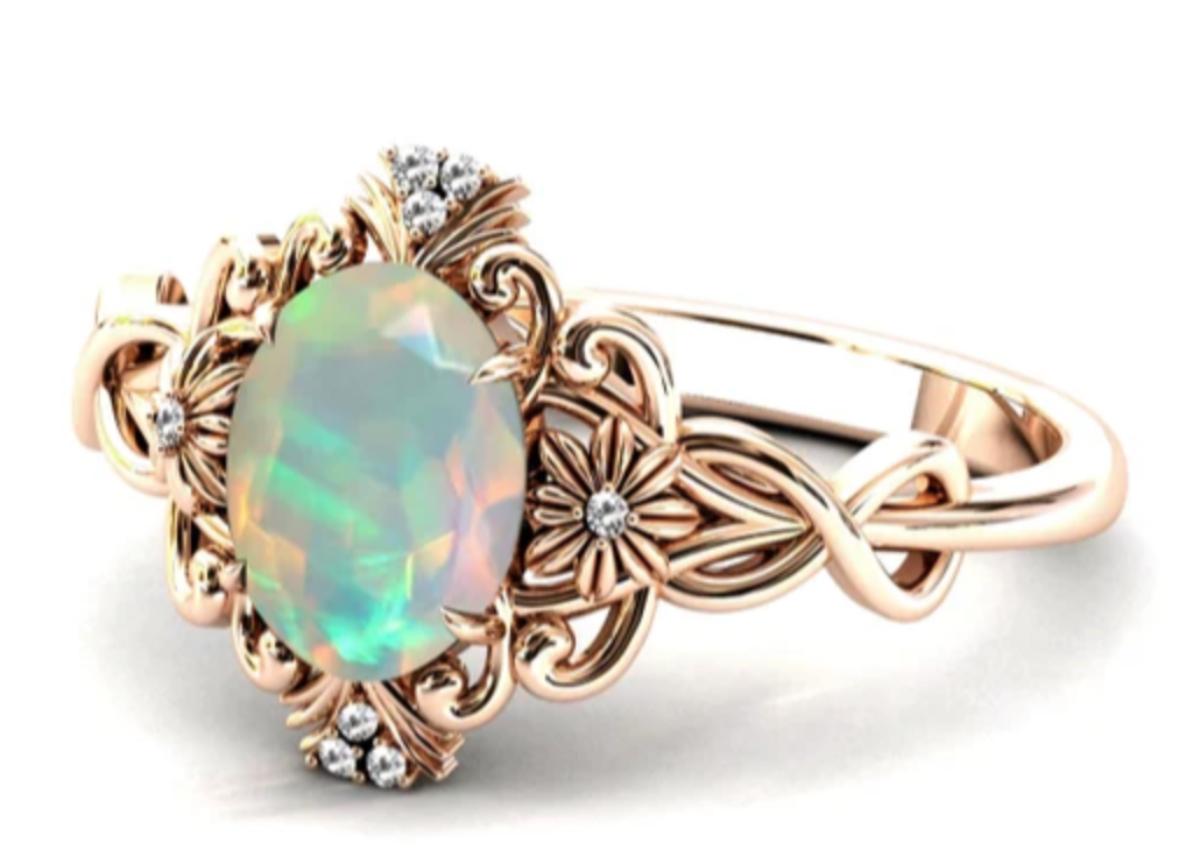 Oval Cut Ethiopian Opal & Rose Gold Art Deco Ring
