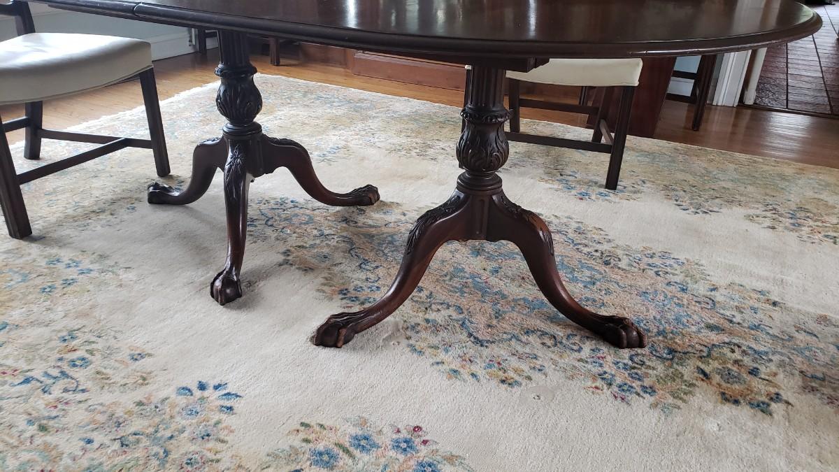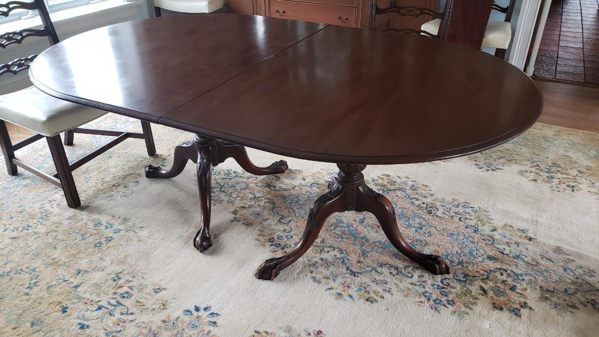 Dining room table 45" wide x 75" long, leaves are 12" wide