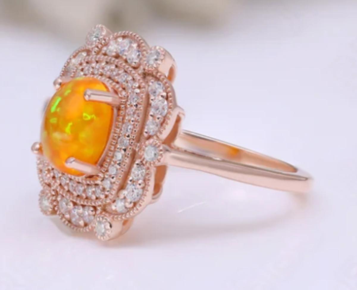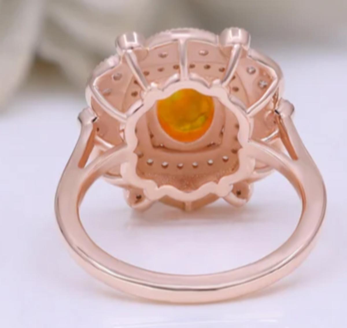 Oval Fire Yellow Opal 14K Rose Gold 925 Silver