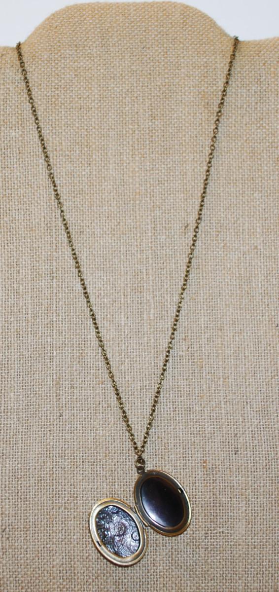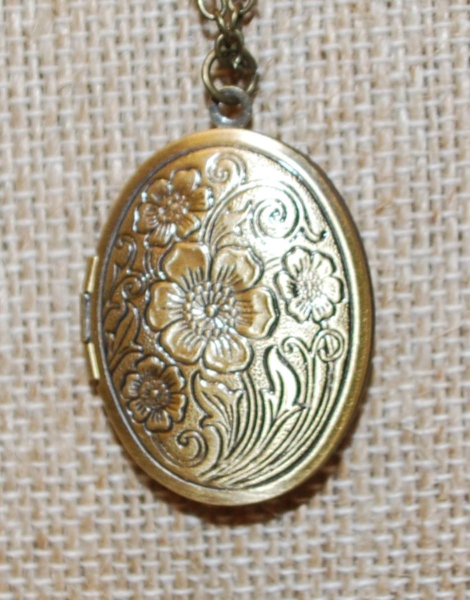 Oval Flowered Brass Style Locket PENDANT (1¼" x 1") on a Dark Gold Tone Necklace Chain 20" L