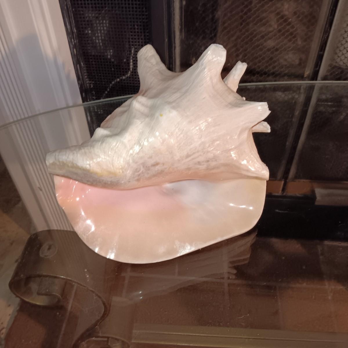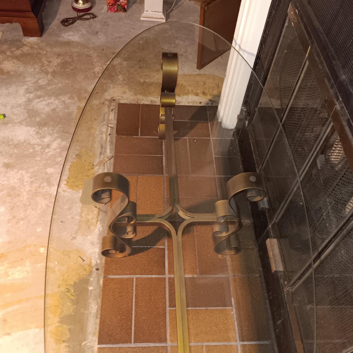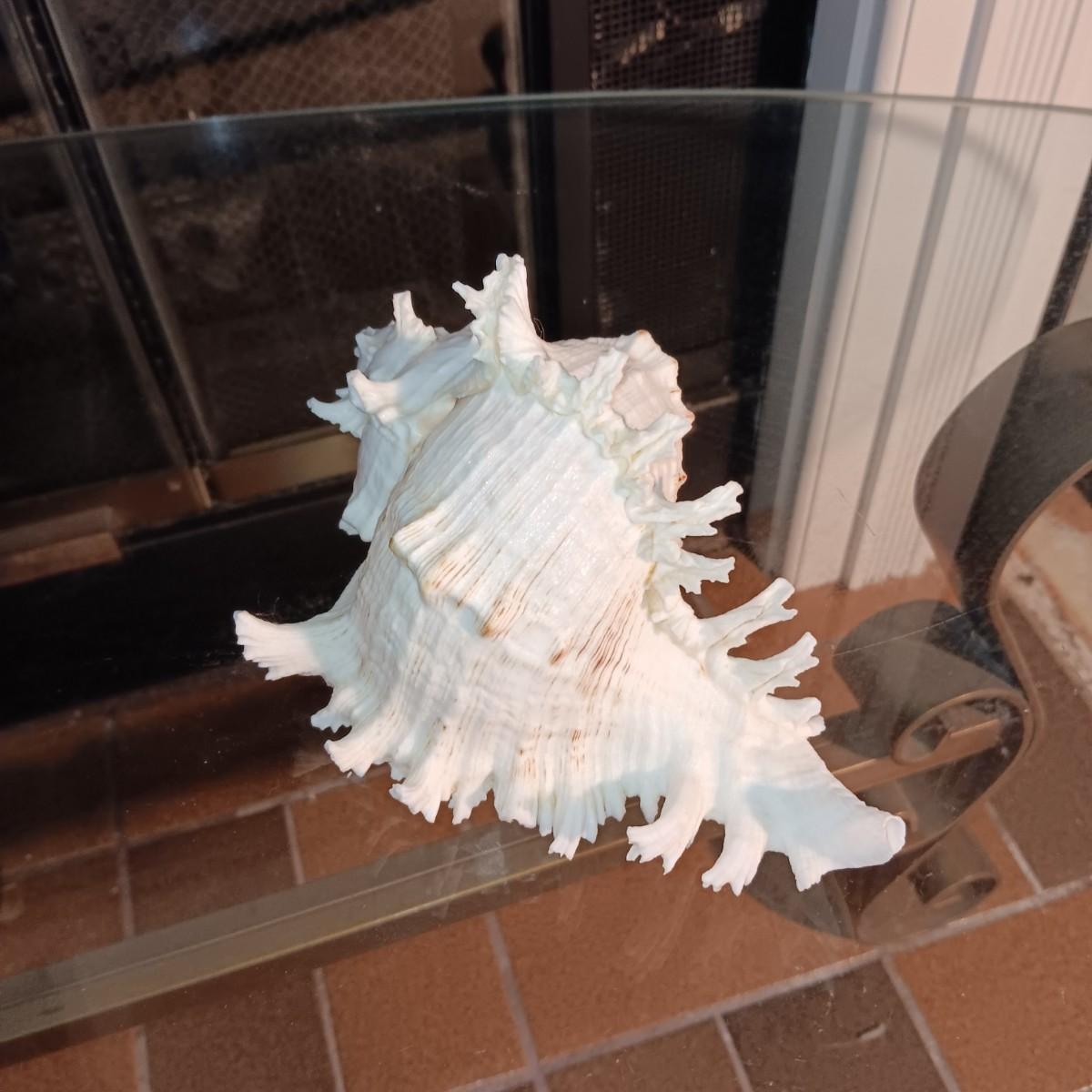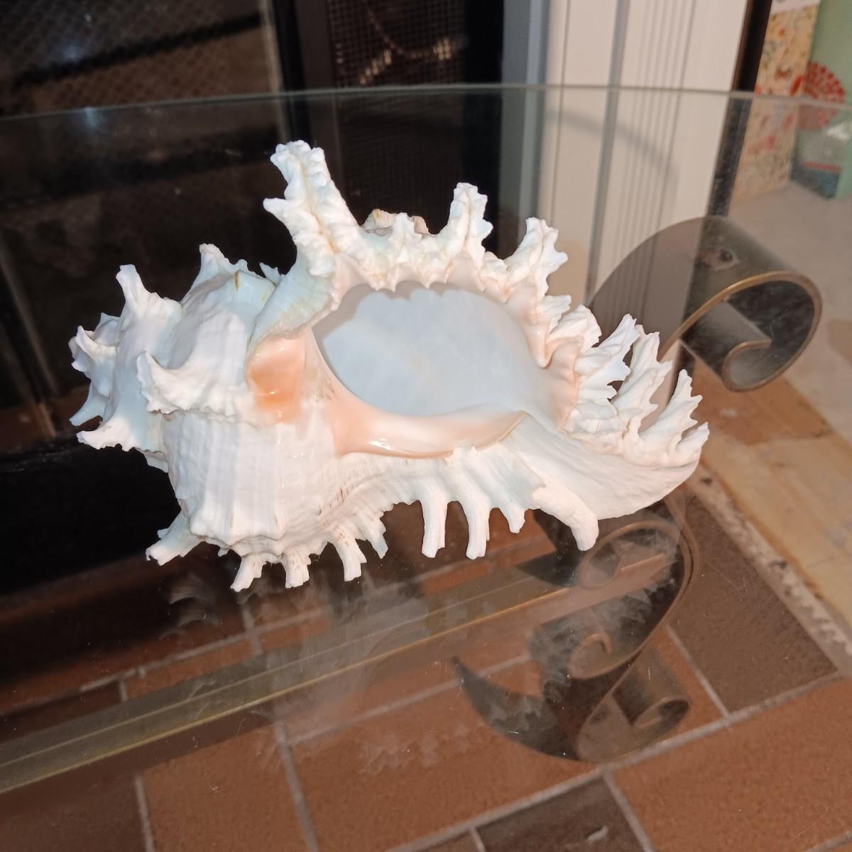 OVAL GLASS TOP COFFEE TABLE WITH IRON BASE PLUS 3 LARGE SEA SHELLS