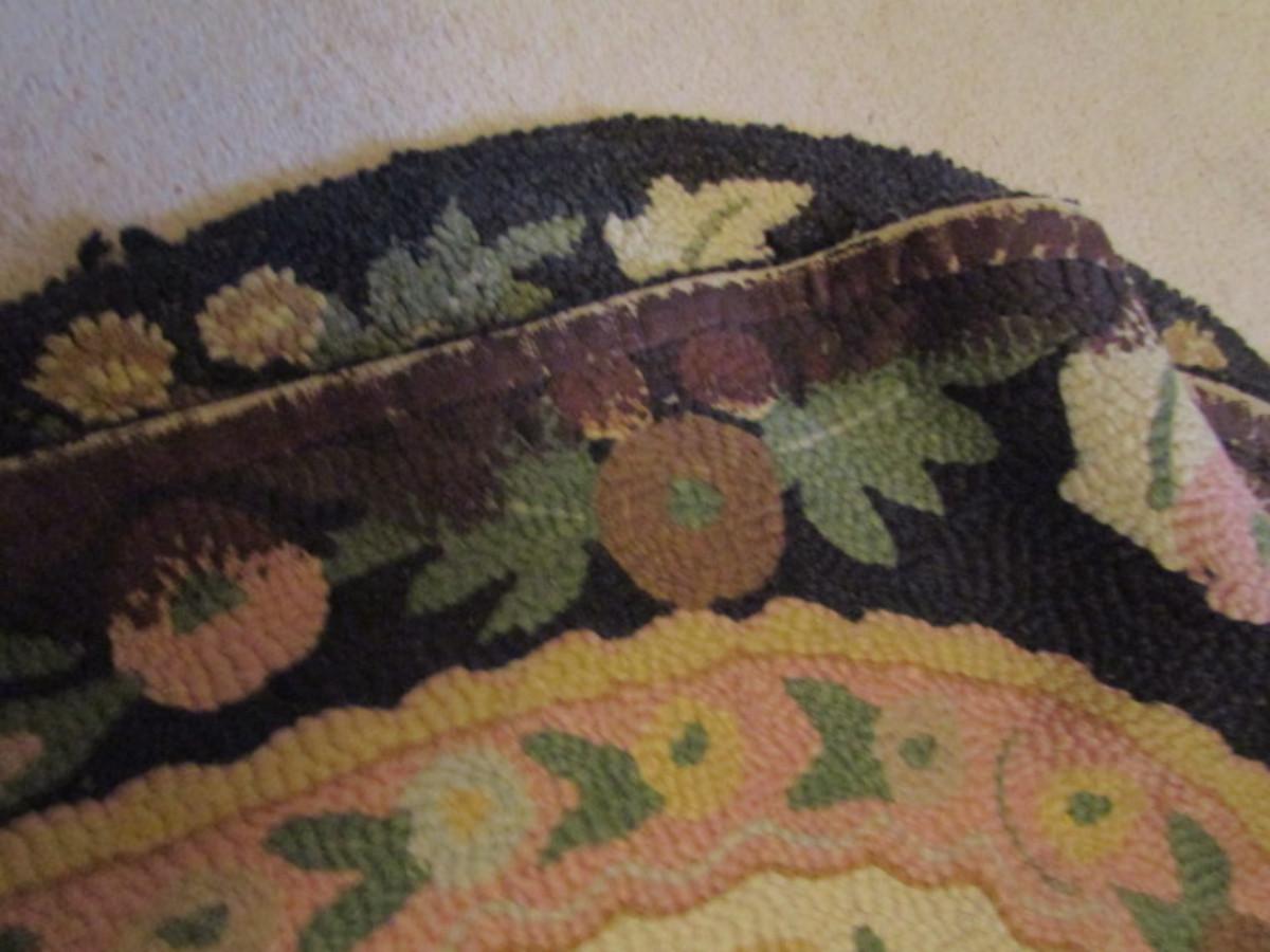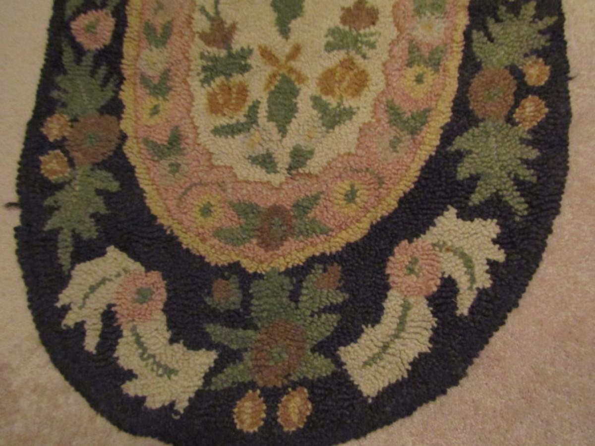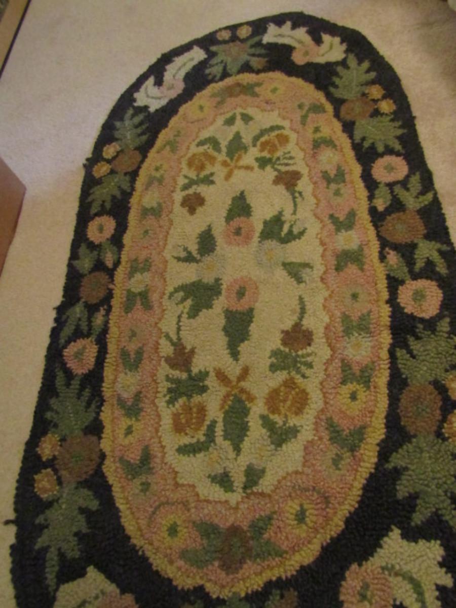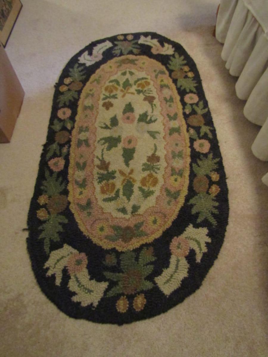 Oval Hooked Rug: Floral with Center Medallion- Approx 58" x 29" (#3). Some fraying on edges- please see all pictures.