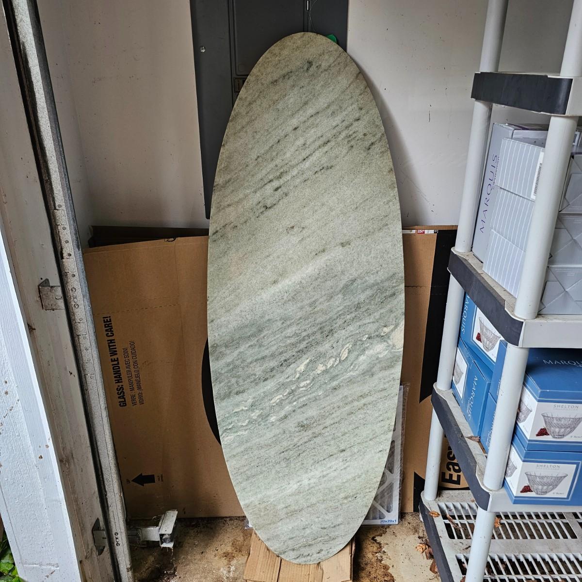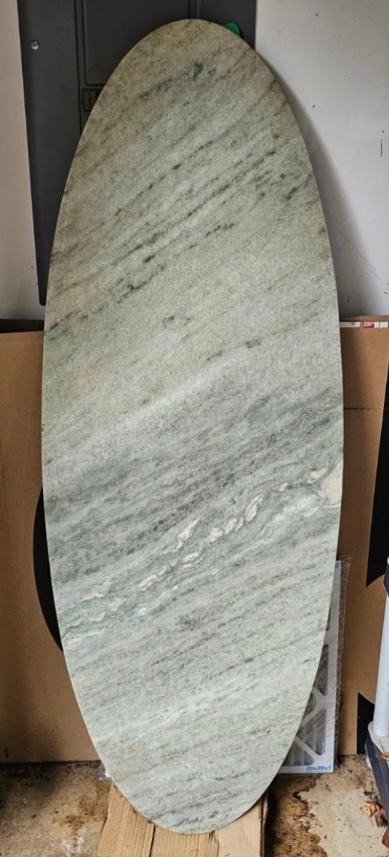 Beautiful finished marble piece for table top or other. Piece has natural markings throughout, slight greenish cast. Item measures 22" x 60" x .5" thick. See photos for details. Local pickup only. Winning bidder must bring assistance to help move and load this item due to its weight and/or size.