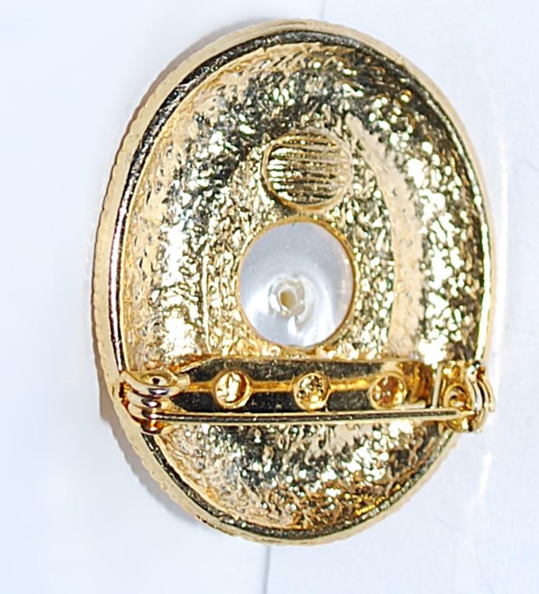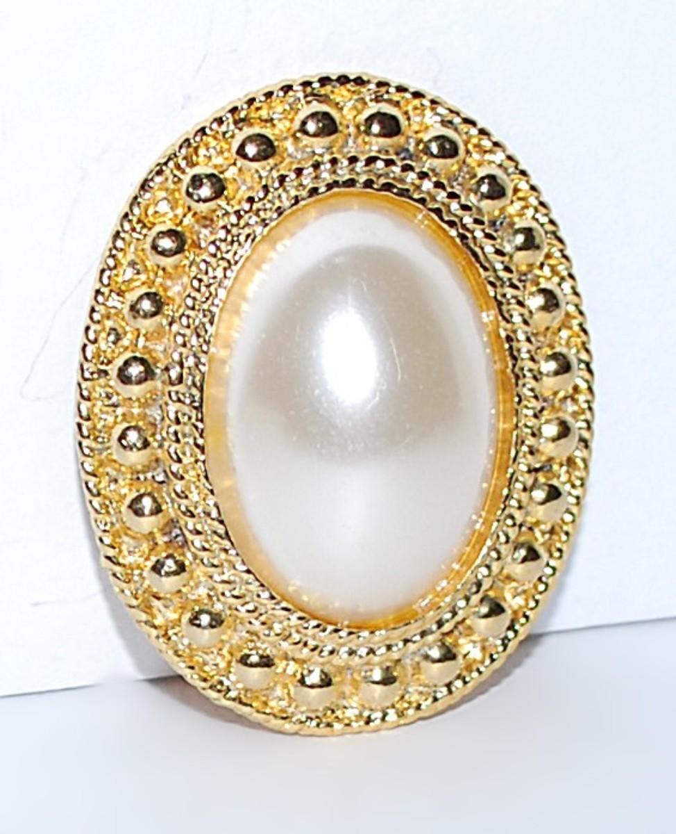 Oval Pearl-Style BUTTON BROOCH (1½" x 1¼") on a Gold Tone Setting