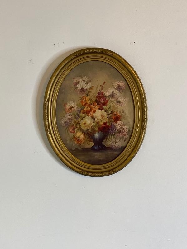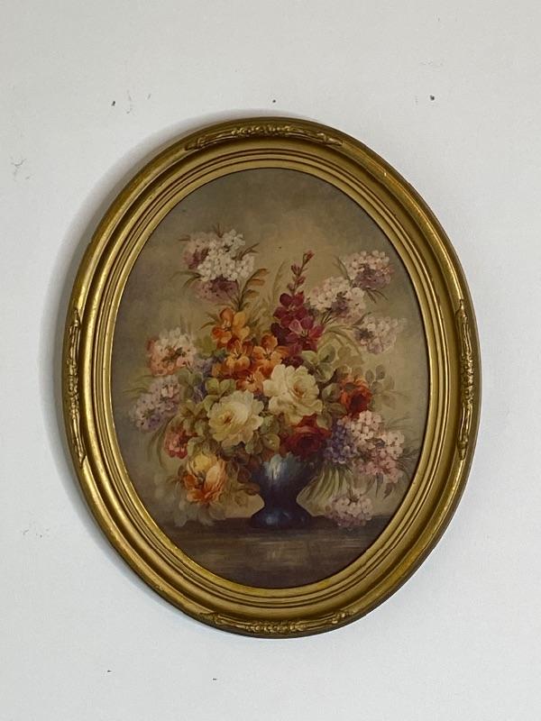 Vintage Oval Floral Picture with Gold Frame
