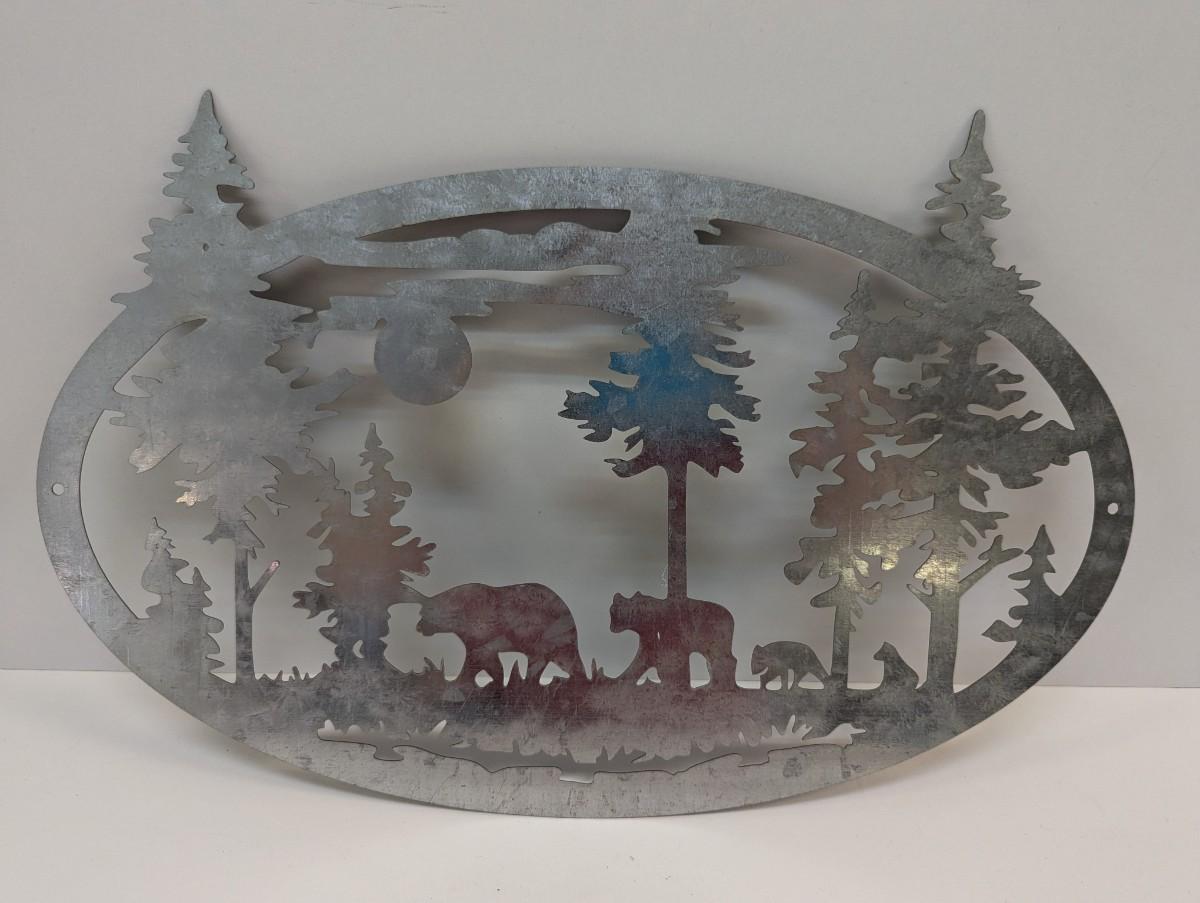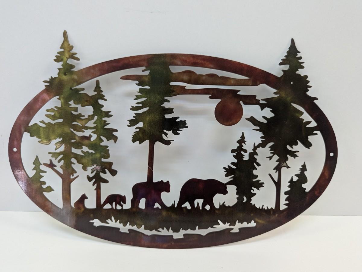 Oval Retro Laser Cutting Metal Wall Art Handmade Silhouette Creative Forest Wildlife Bears