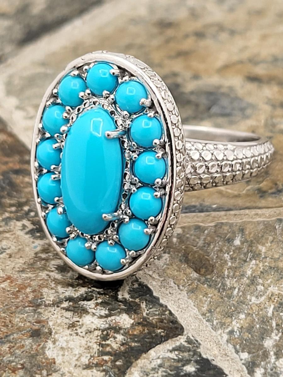 Oval & Round Sleeping Beauty Turquoise Ring 7.9gr