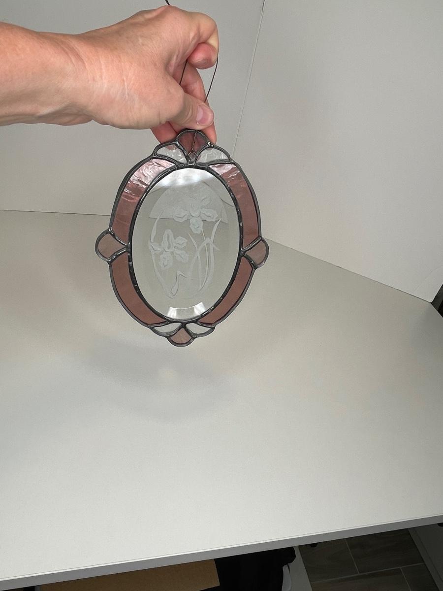 Oval Shaped Etched Glass pink image of Alaskan Flower Vintage