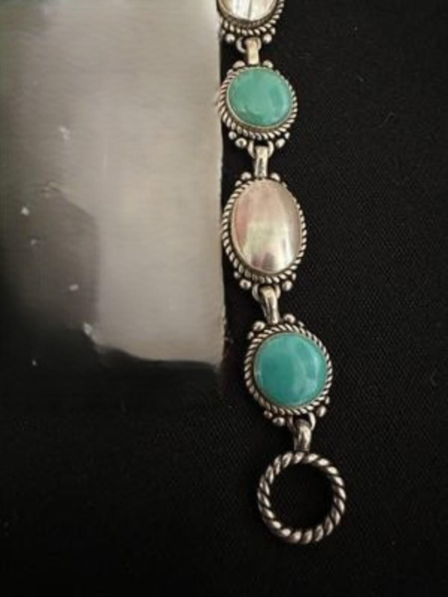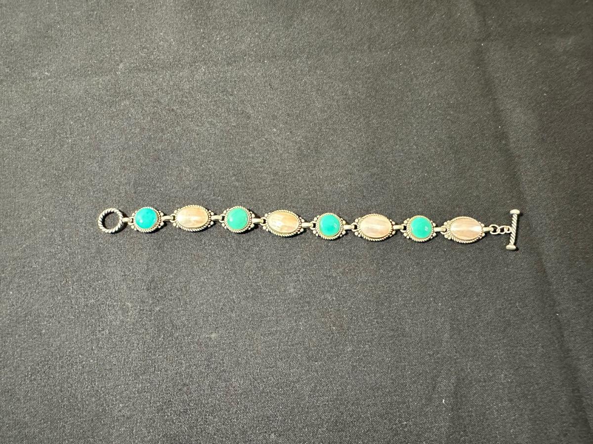 .925 OVAL SHAPED SHELL & ROUND TURQUOISE COLORED BRACELET