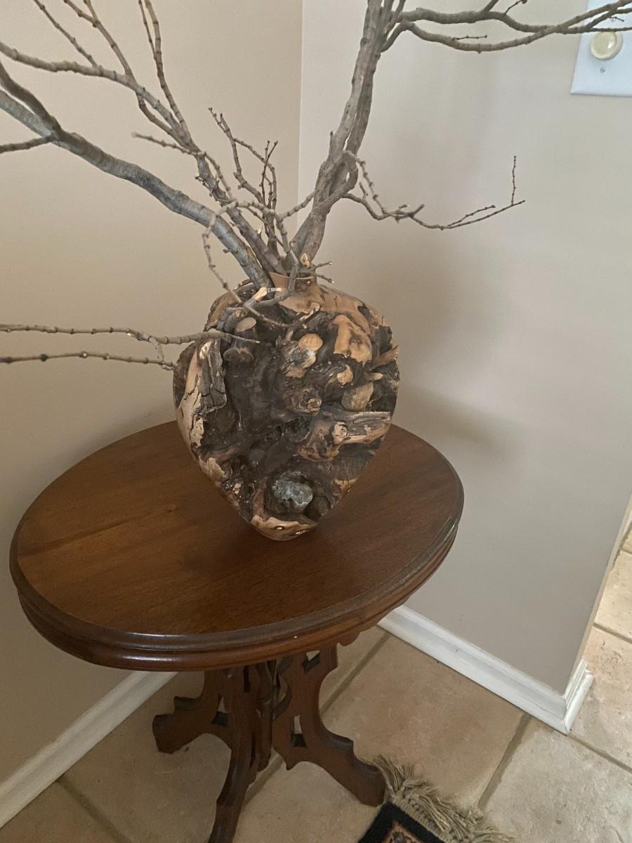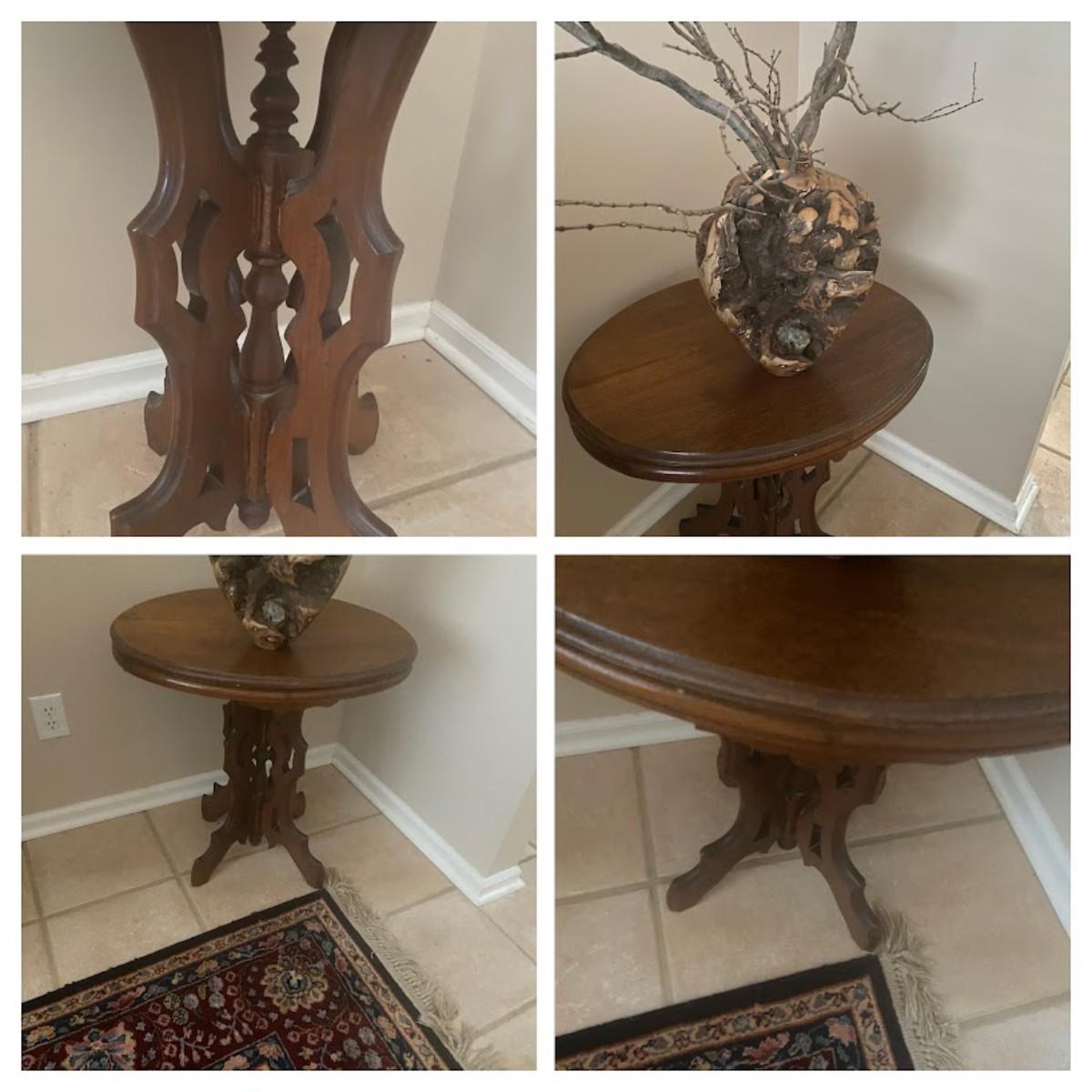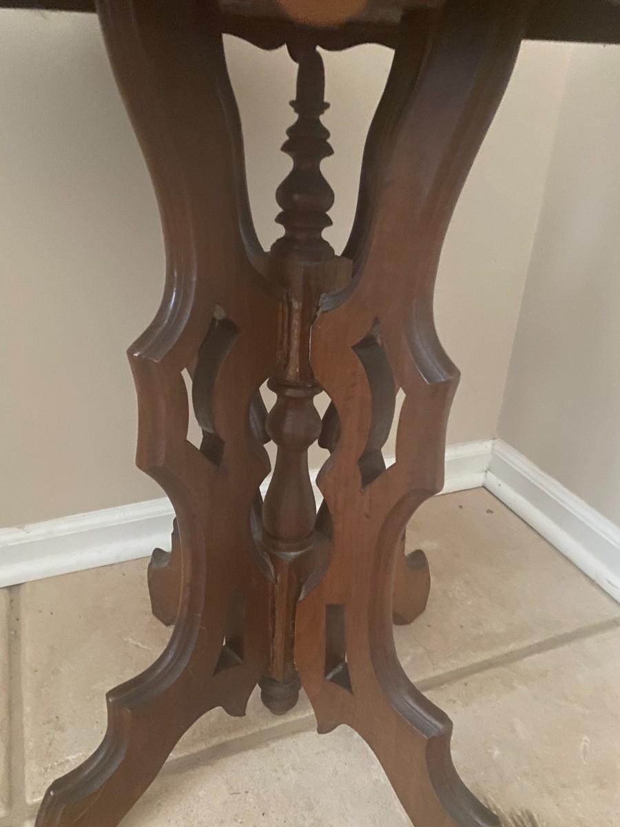 Pedestal side table 26 x 18 x 25. Crack in seam of table leg. Not terribly noticeable.