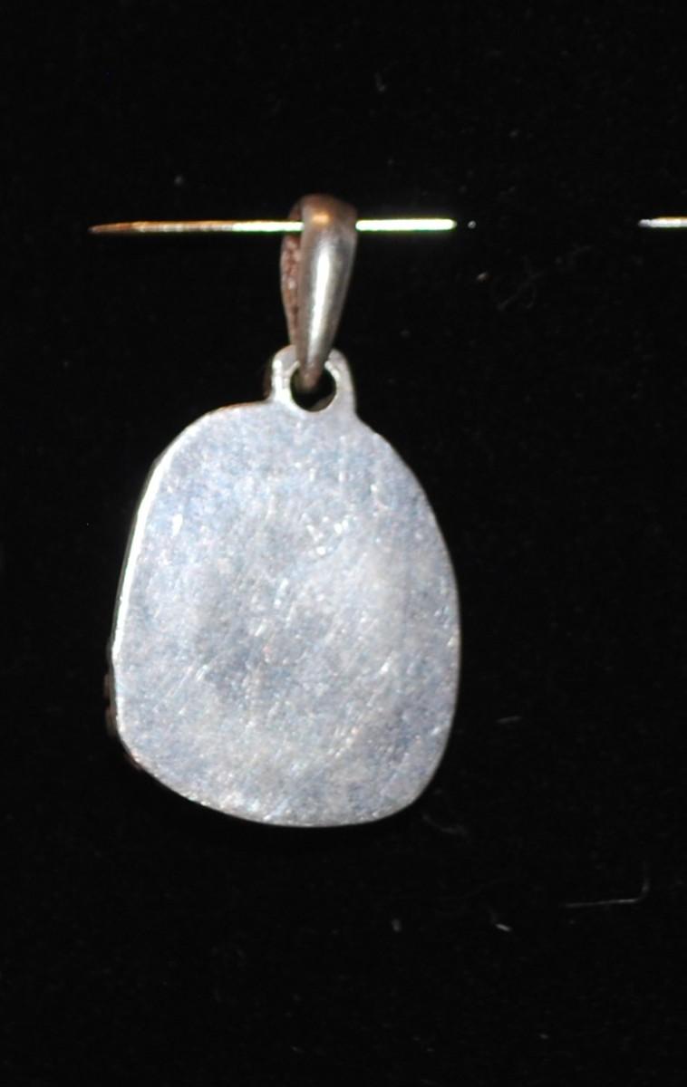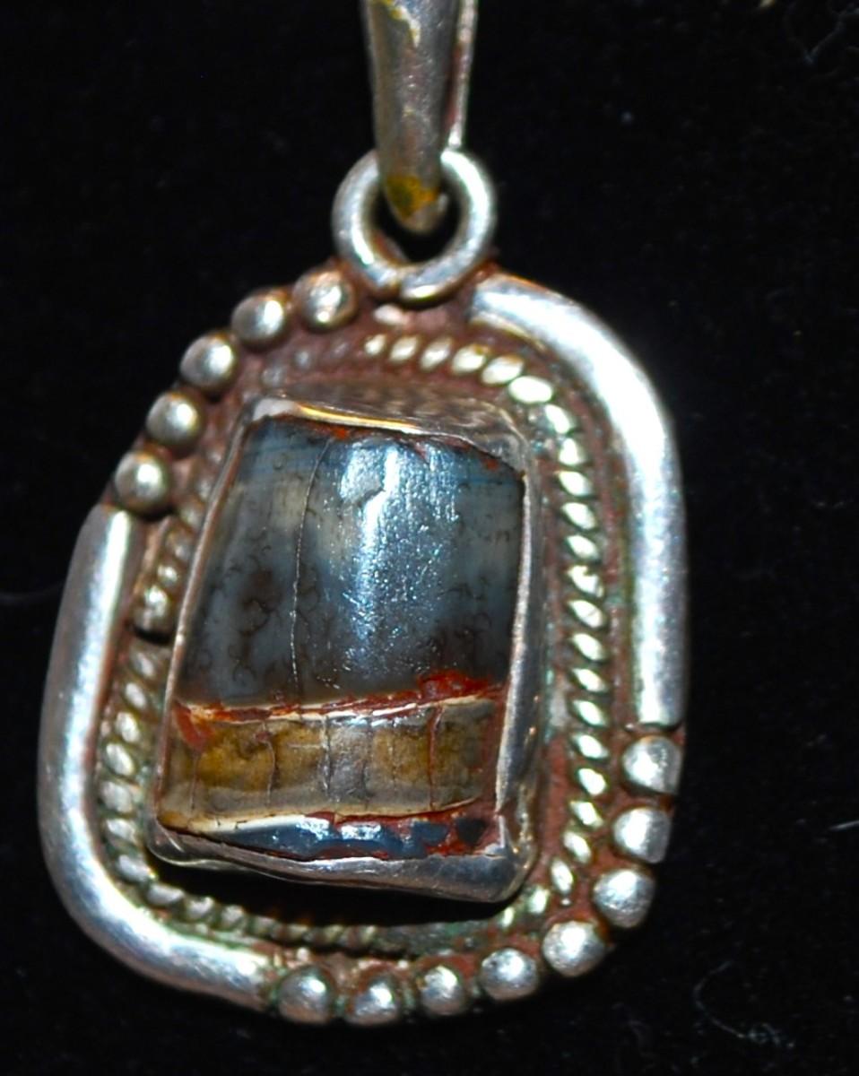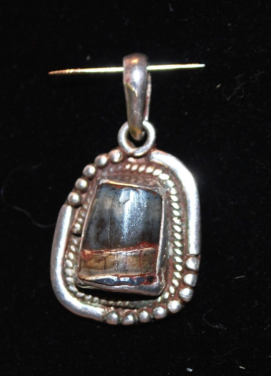 Oval Silver Tone PENDANT with Agate Style Stone 1 ¼" L