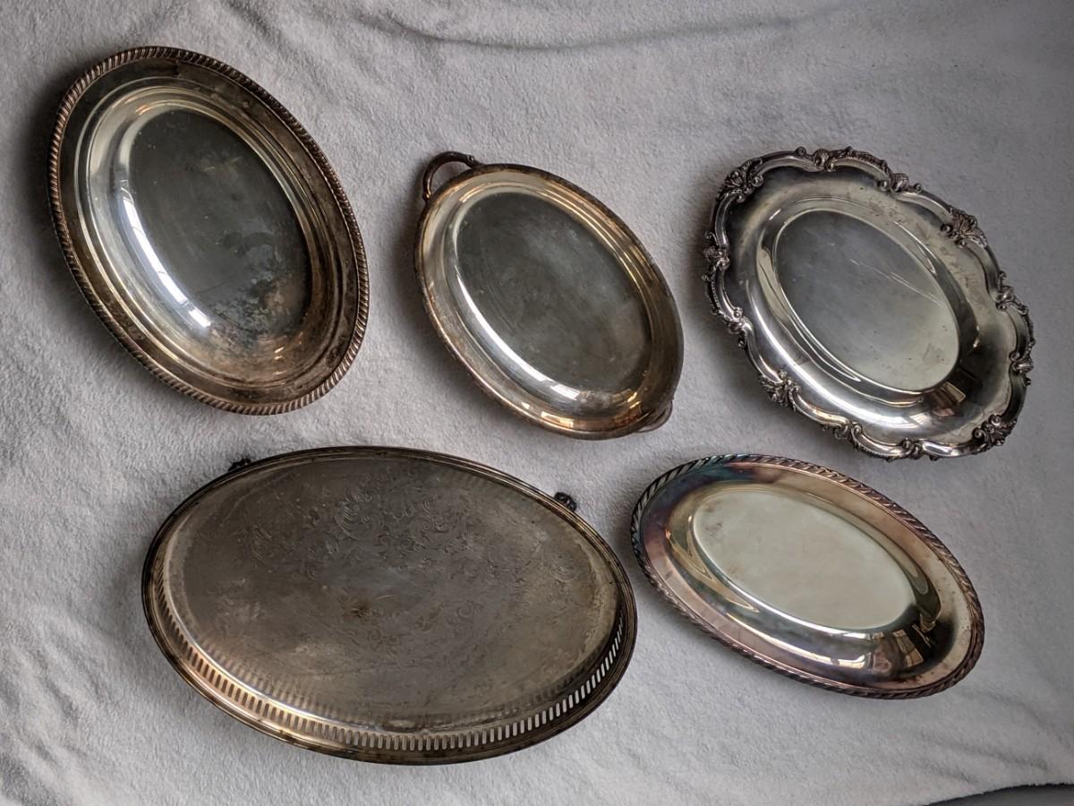 Oval Silverplated Serving Trays, Lot of 5