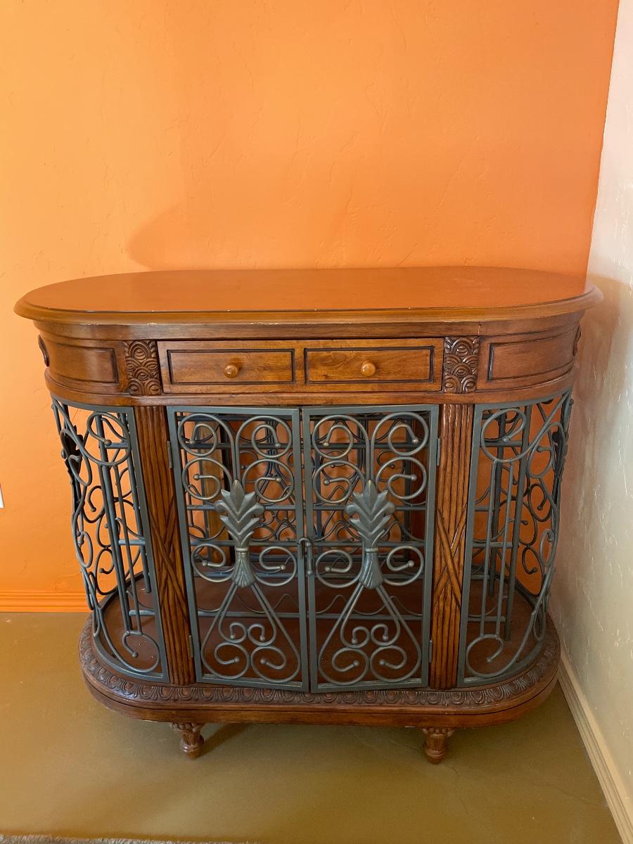 #198 Oval Wood & Metal Wine Cabinet Sideboard Buffet