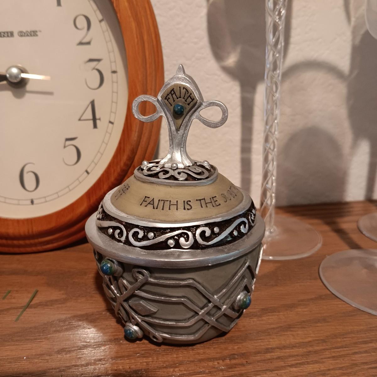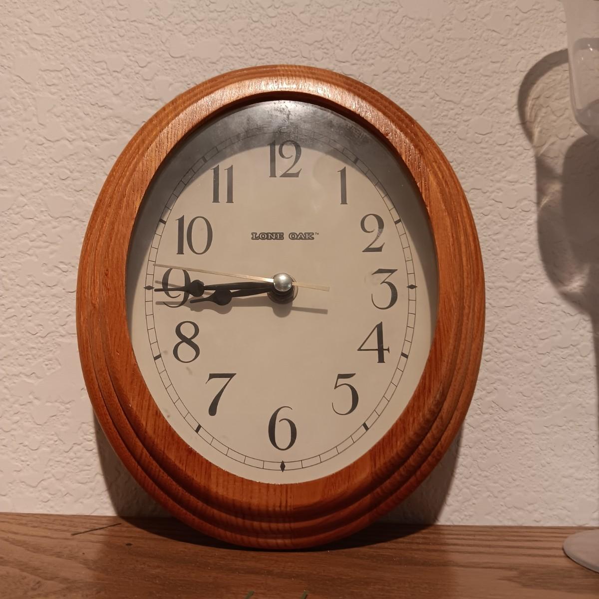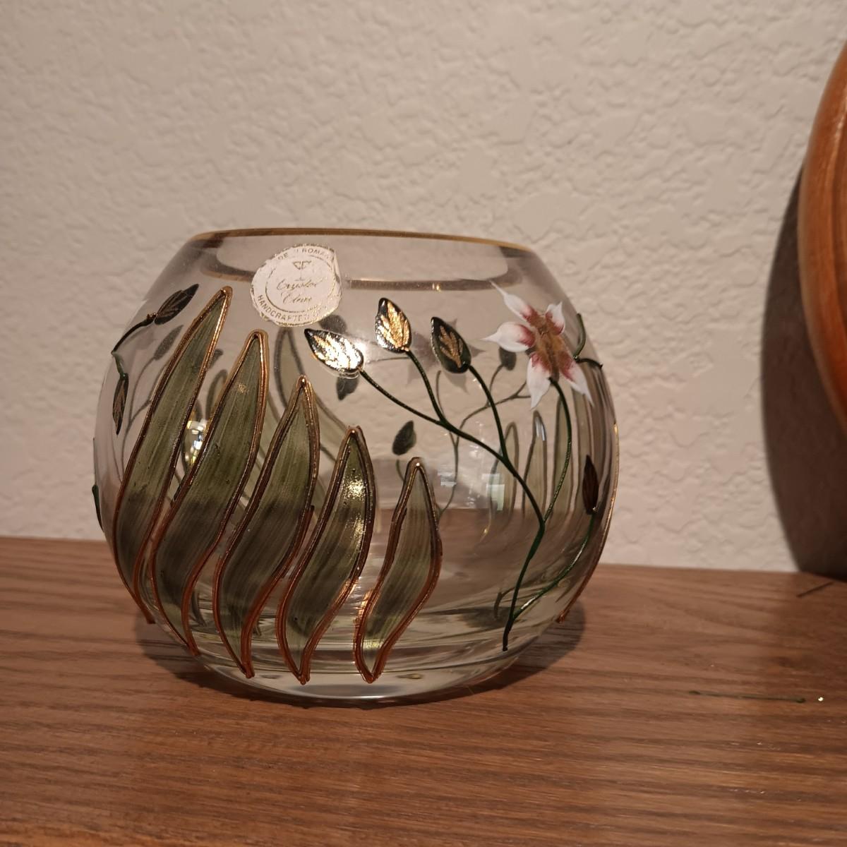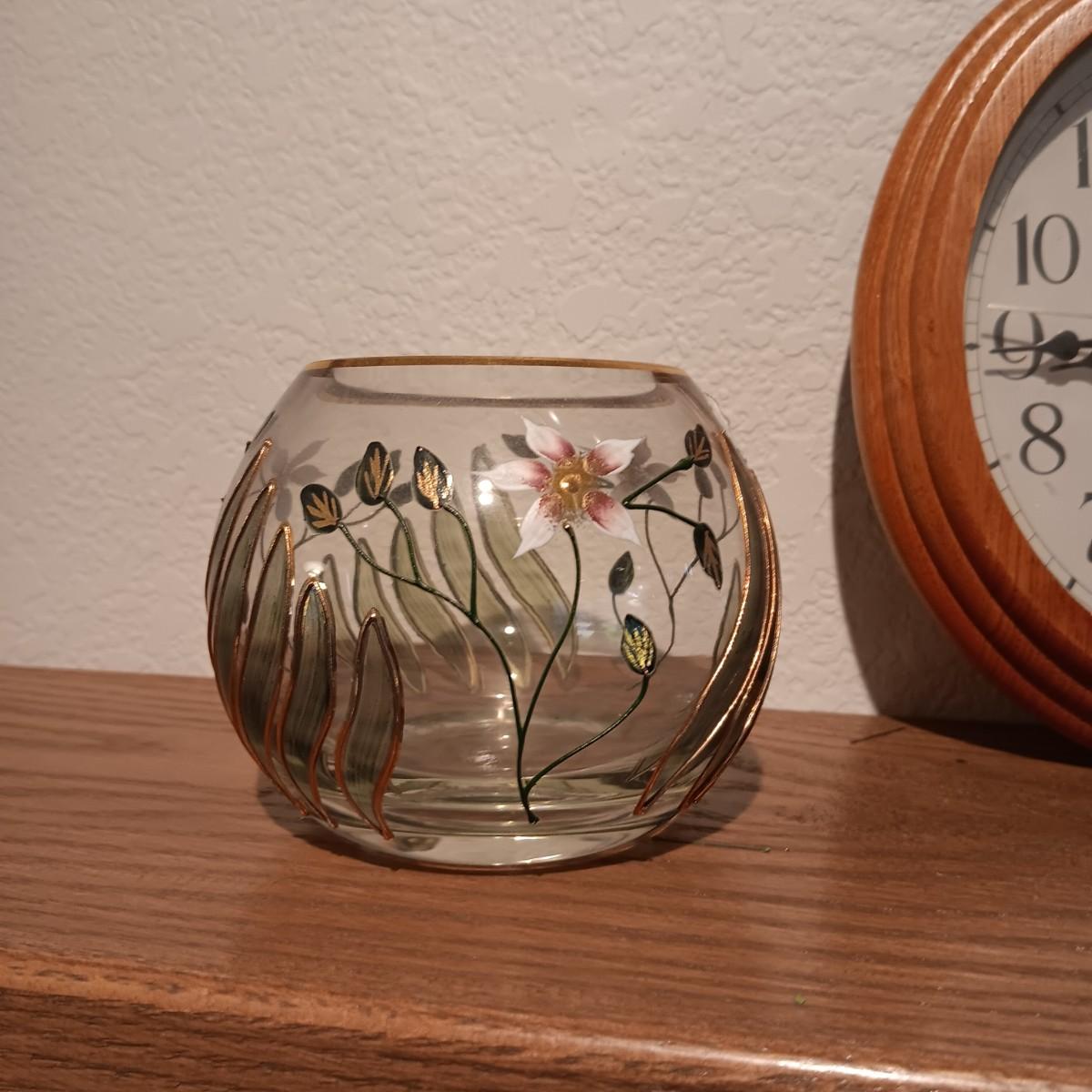 OVAL WOODEN FRAMED WALL CLOCK, 3 GLASS STEMMED CANDLE HOLDERS, GLASS ROSE BOWL AND TRINKET BOX