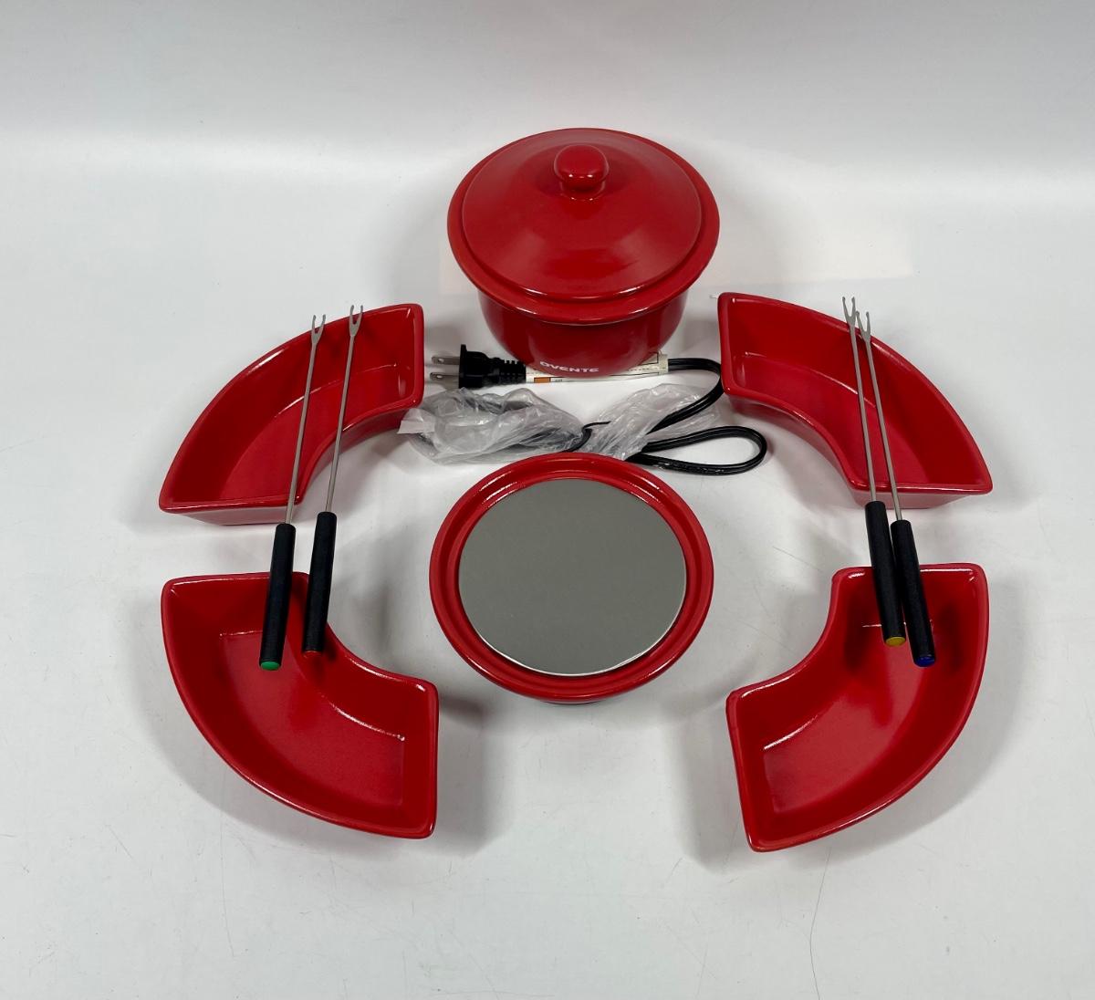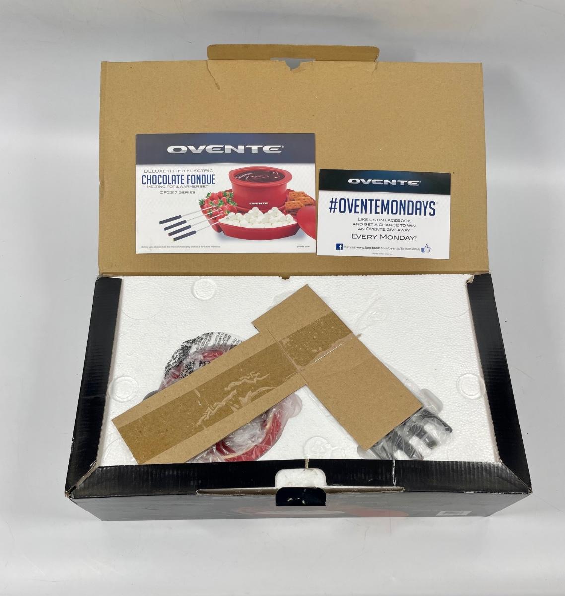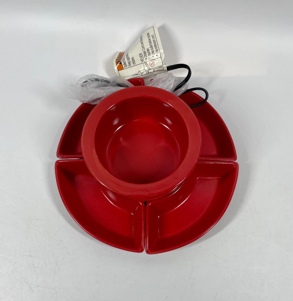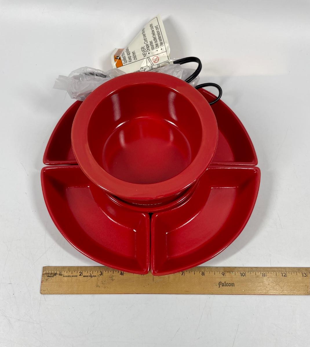 ric Chocolate Fondue Melting Pot & Warmer Set. Model CFC317, includes heating base, fondue pit and lid, 4 trays for holding dipping items, 4 fondue forks and user guide. Tested. Packed in original box, appears to never have been used.
