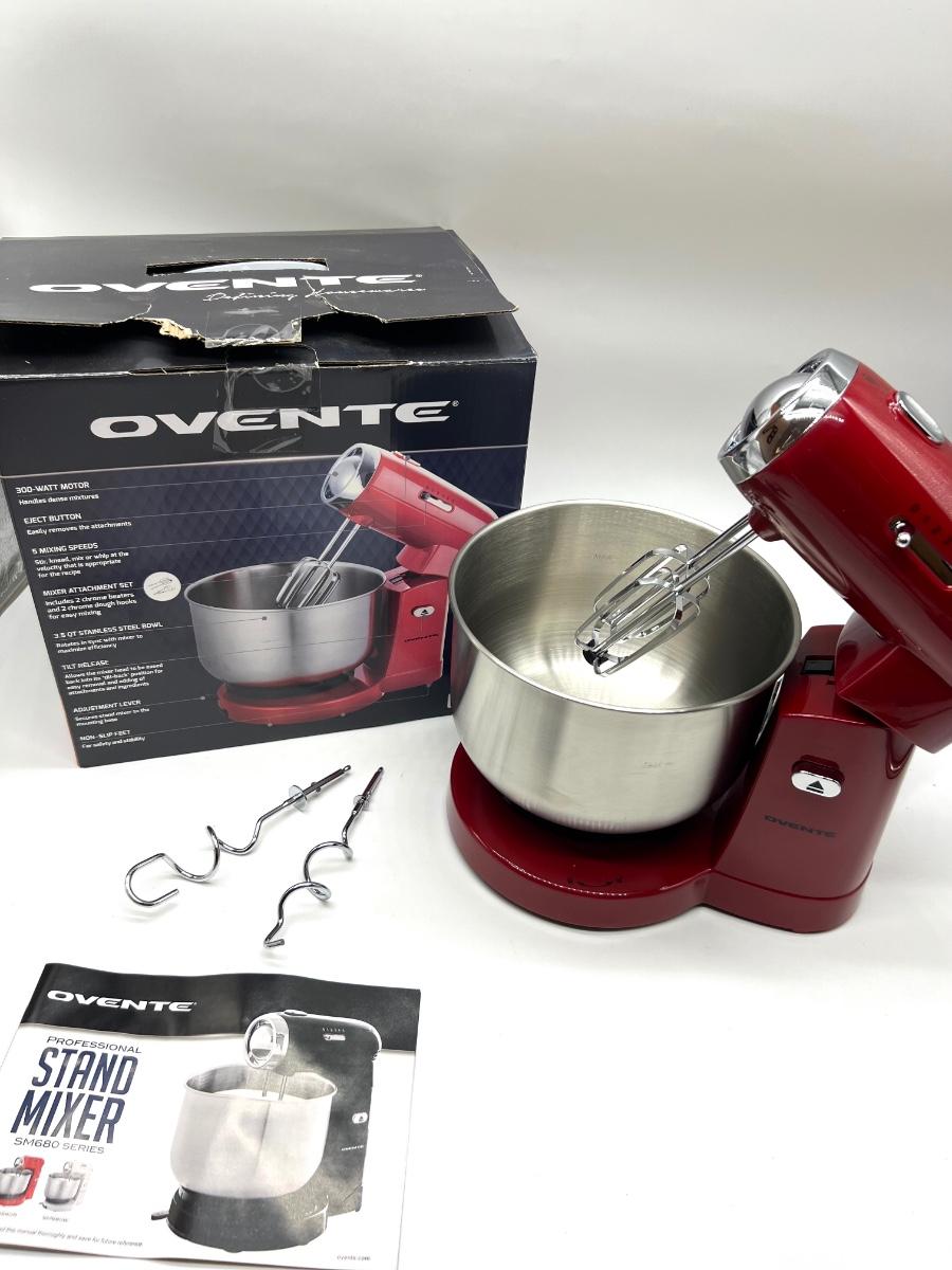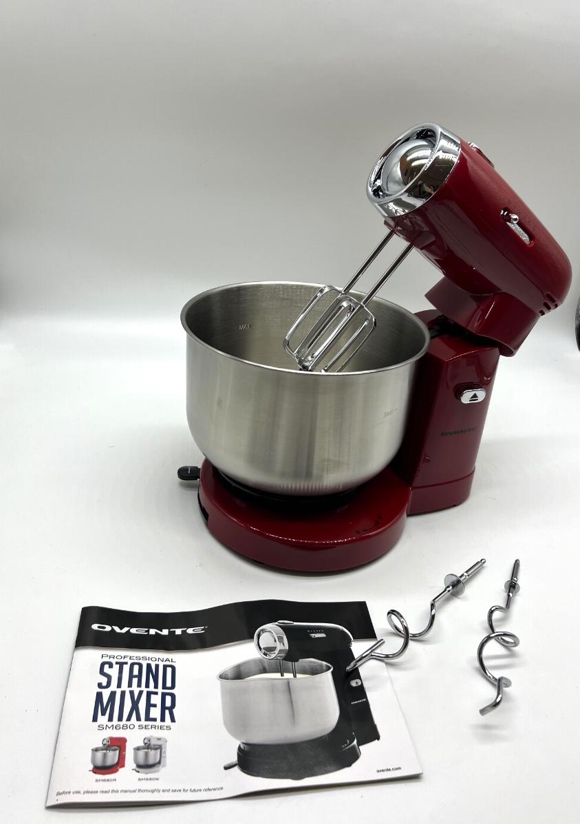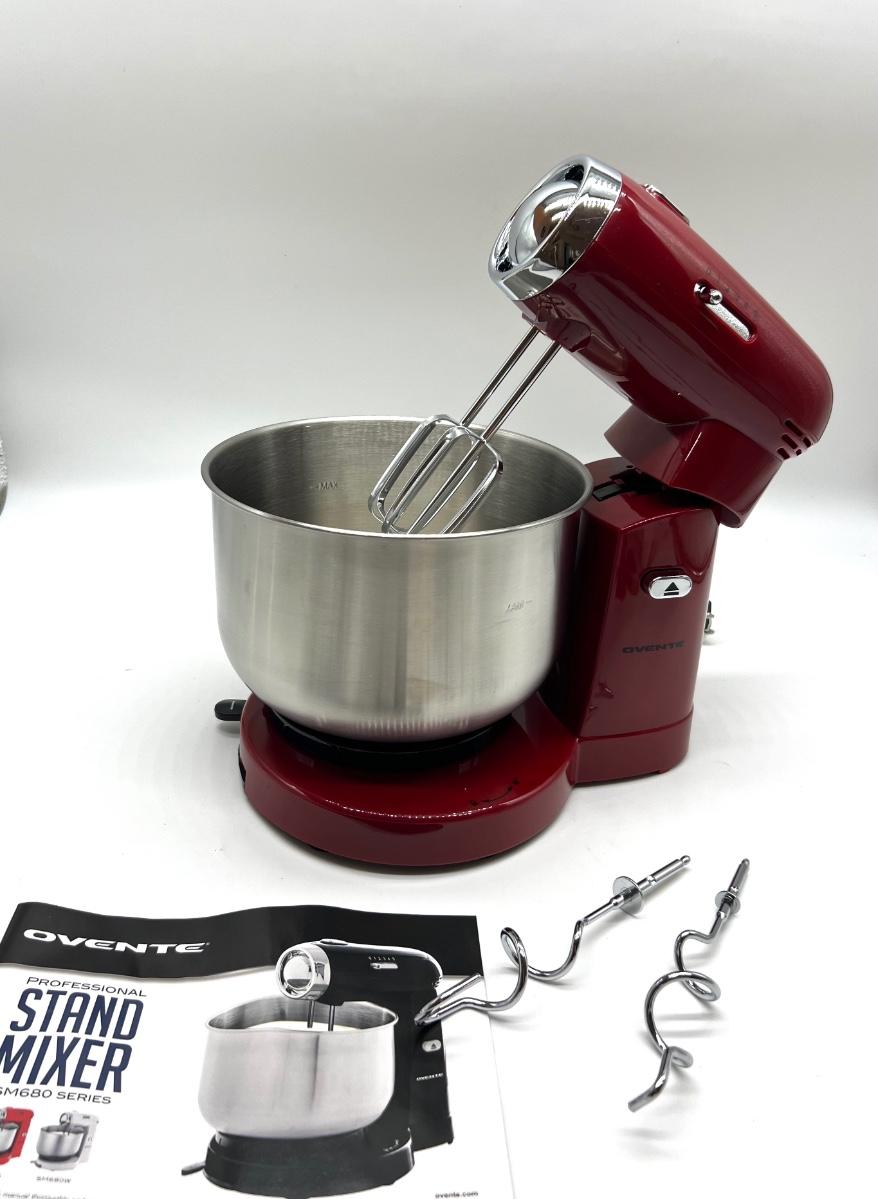 OVENTE Stand Mixer. Appears to be new and unused however the box is open. Includes 3.5 quart stainless steel bowl, 2 Chrome hooks and 5 mixing speeds,