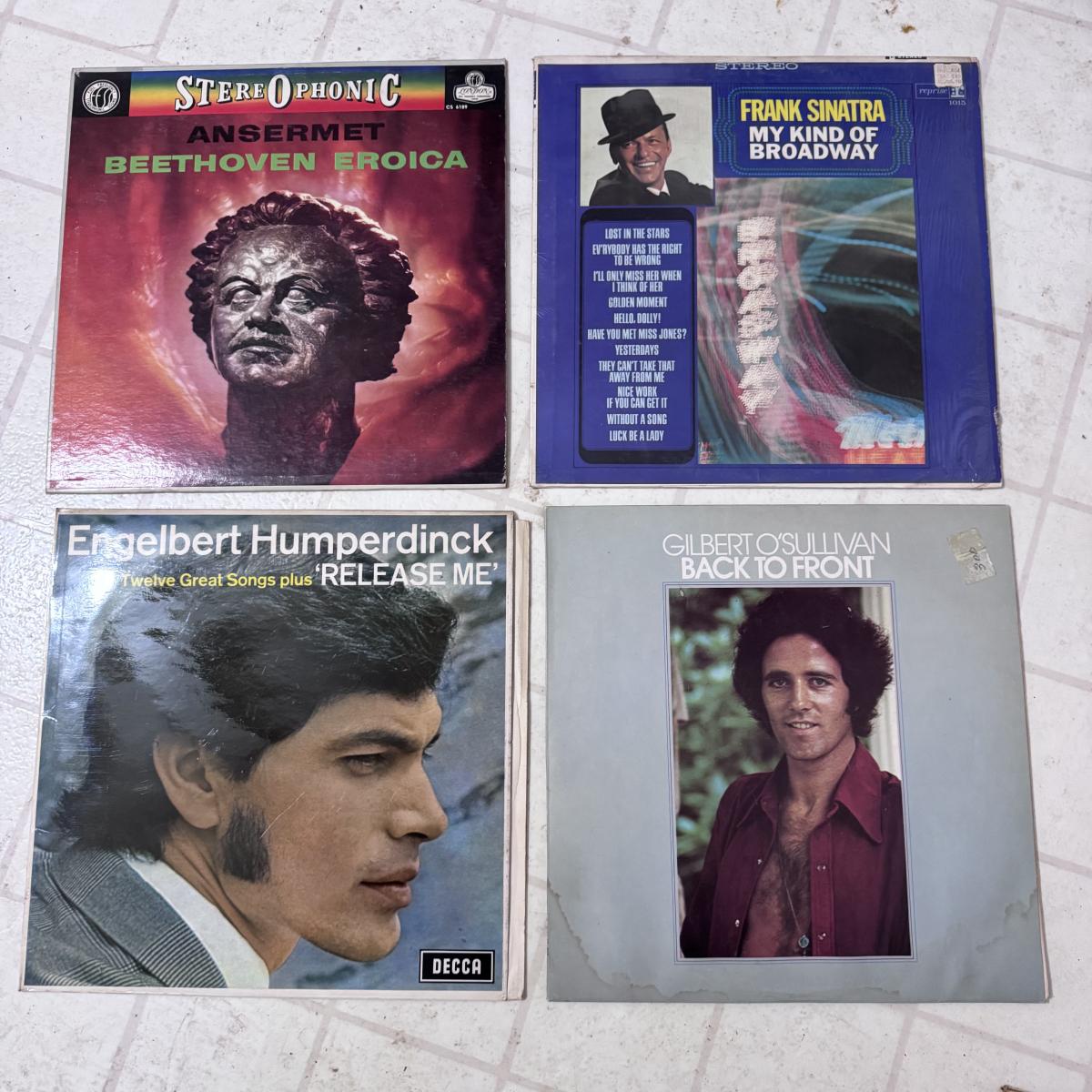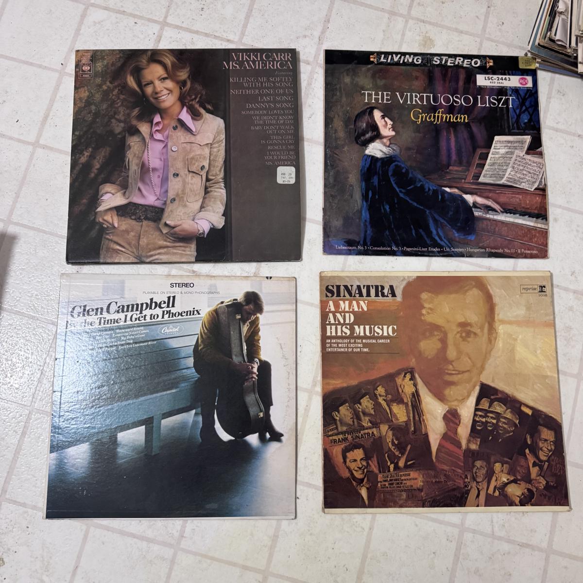 This lot includes over 100 vinyl in several different genres. You’ll find Roberta Flack, Glen Campbell, The Hudson Trio, Beethoven, Sinatra and more. See pictures for more details. The records have not been tested. Some of the covers appear to be dirty.