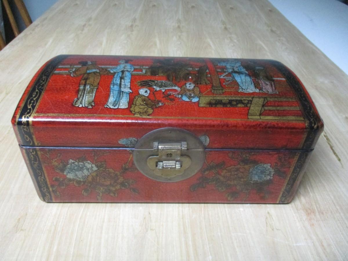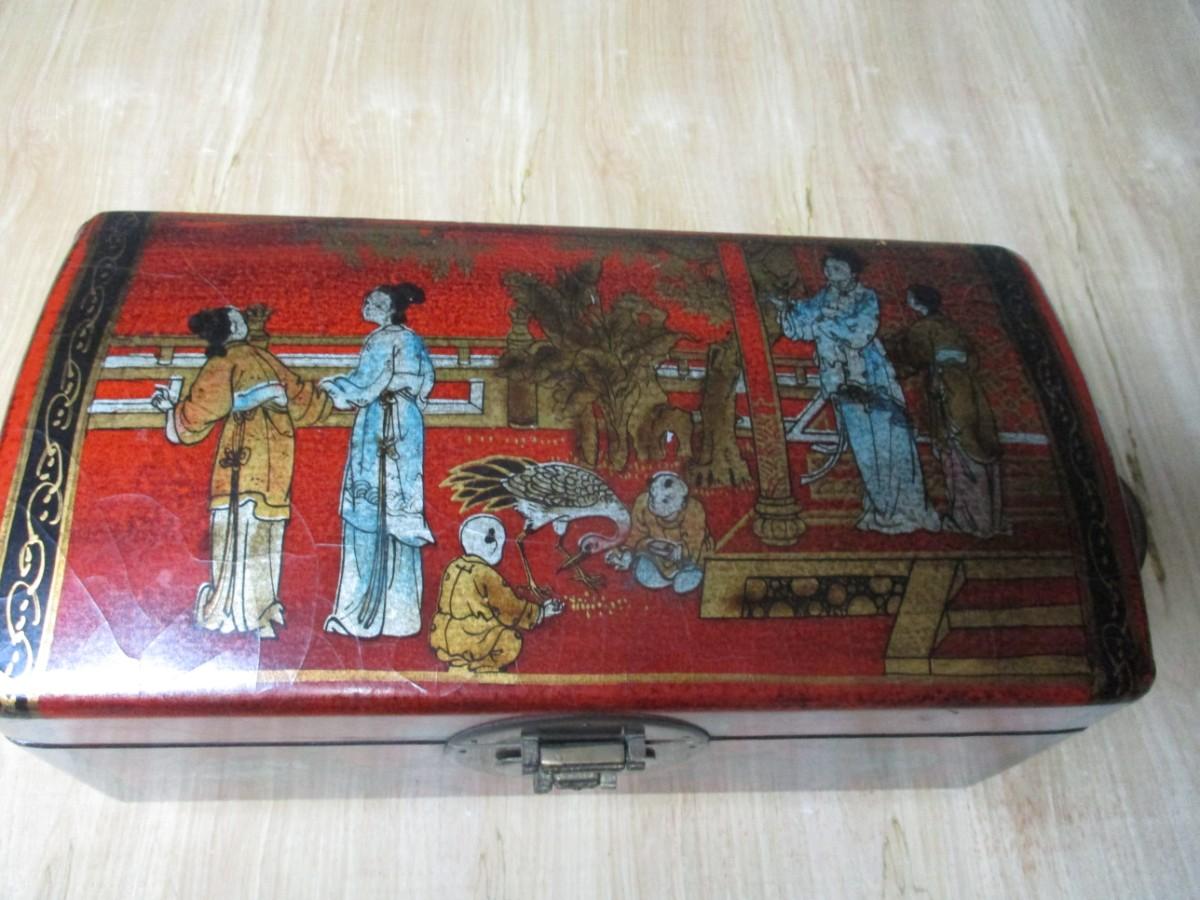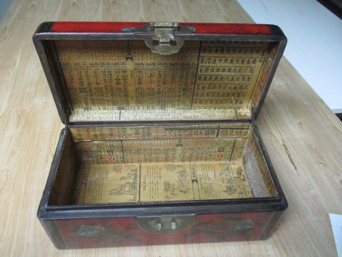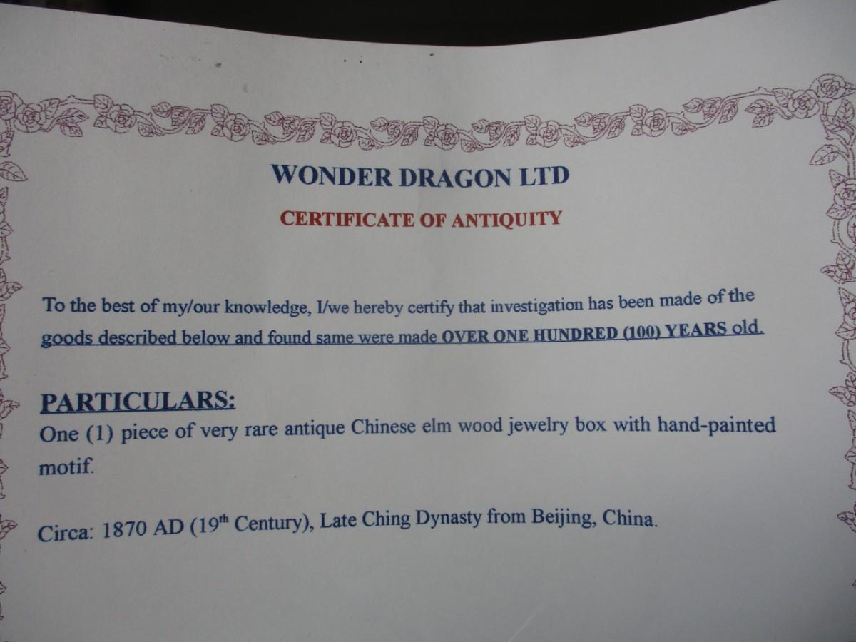 19th Century Rare Antique Hand Painted Chinese Elm Wood Jewelry Box with Certificate- C