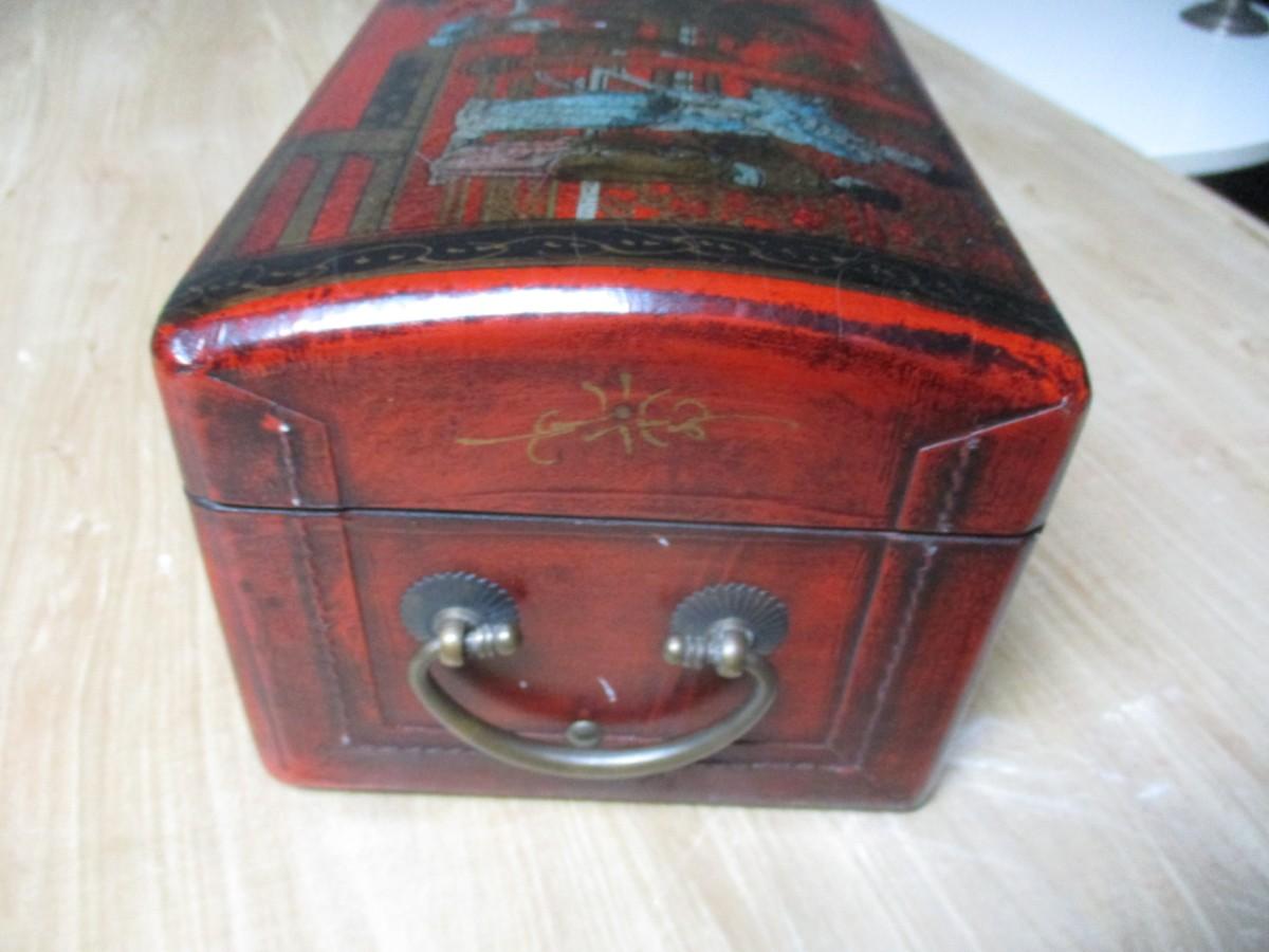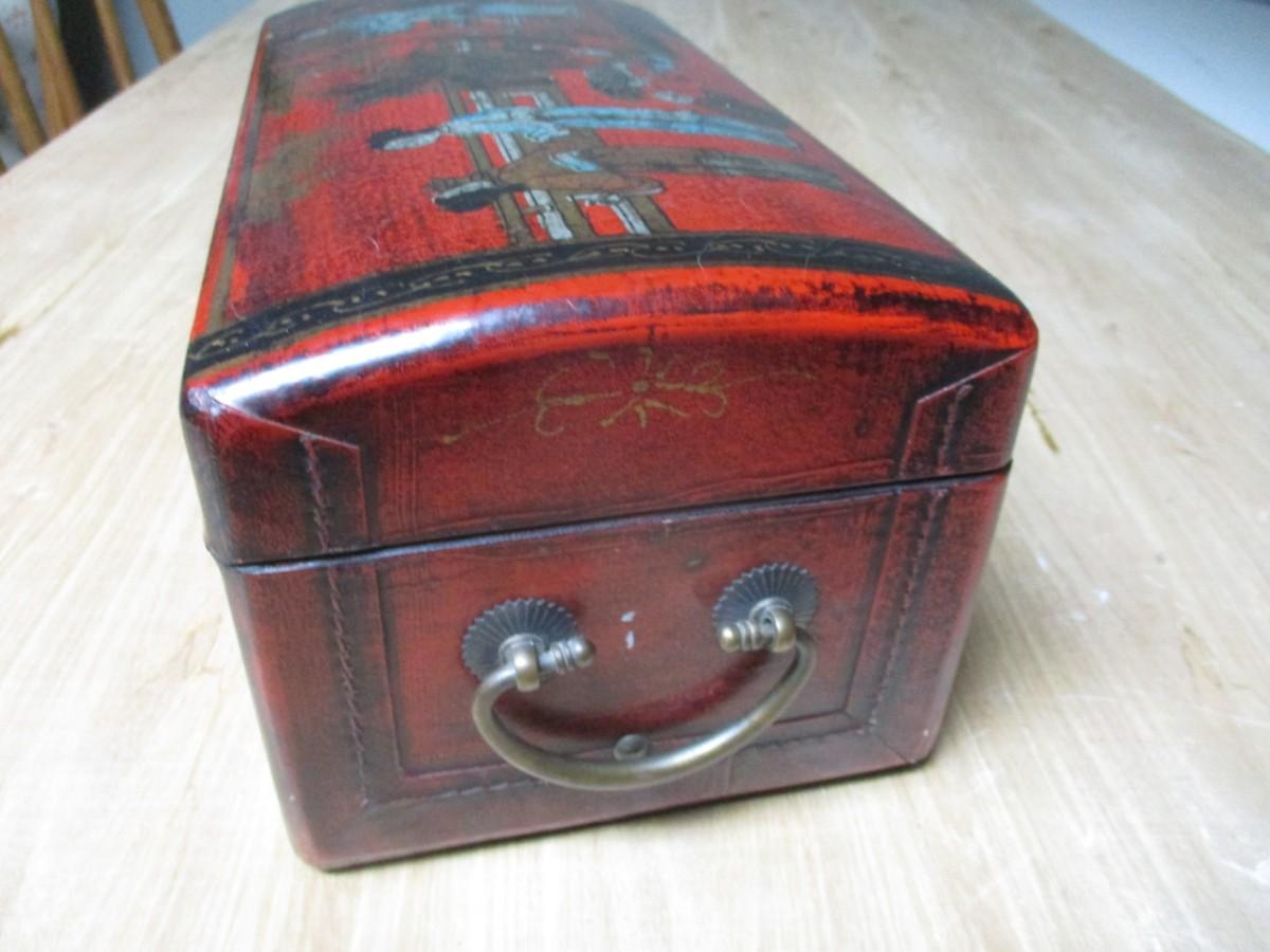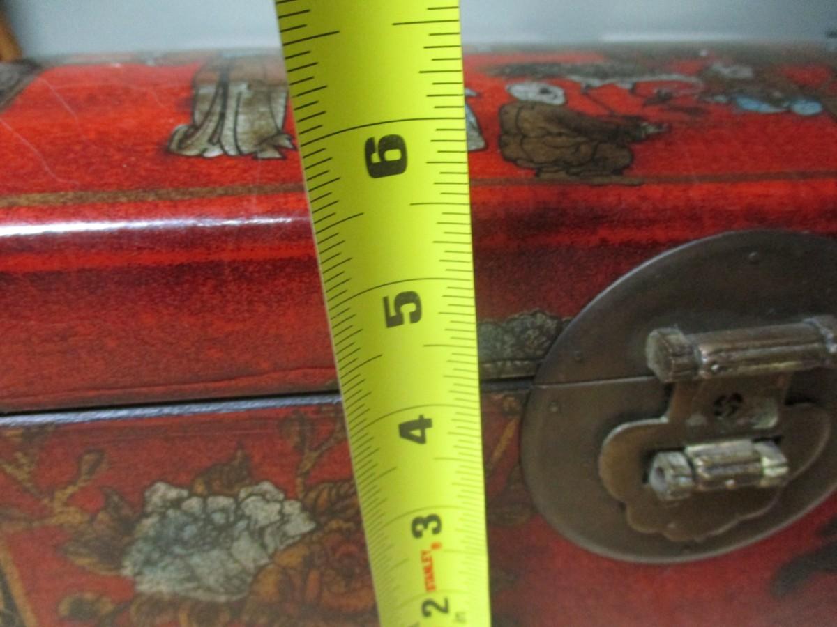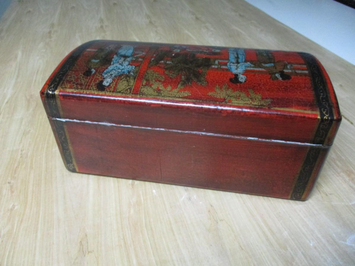 19th Century Rare Antique Hand Painted Chinese Elm Wood Jewelry Box with Certificate- C