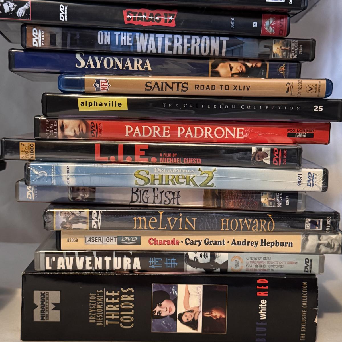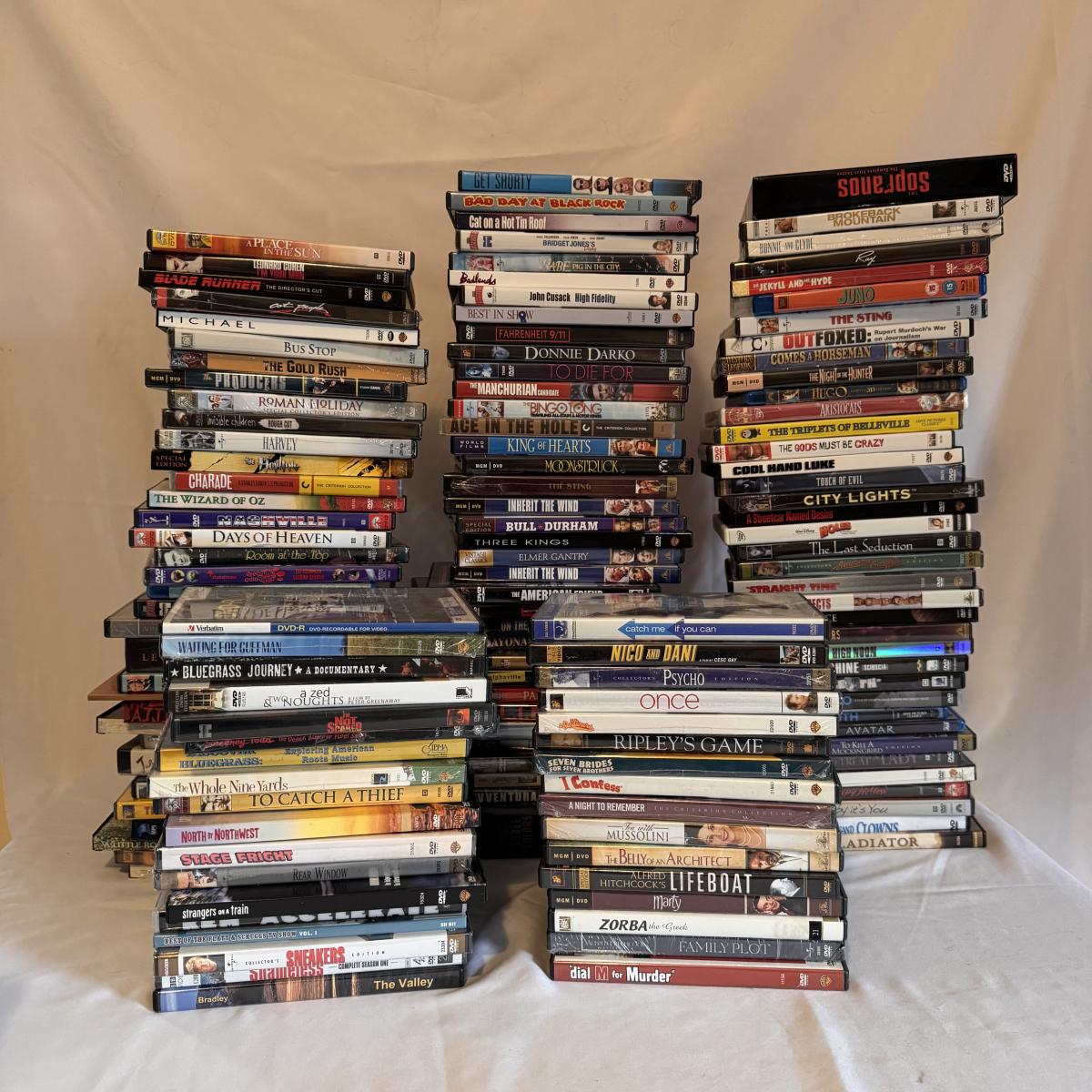 This lot includes over 140 DVDs in several different genres. You’ll find classics like Gladiator, Donnie Darko, Bull Durham, Brokeback Mountain, Blade Runner, The Wizard of Oz and more. DVDs have not been tested, but appear to be in good condition. Some are unopened and sealed in plastic. We cannot guarantee the contents of all the cases. Shipping available.
