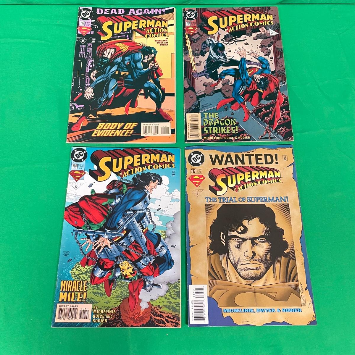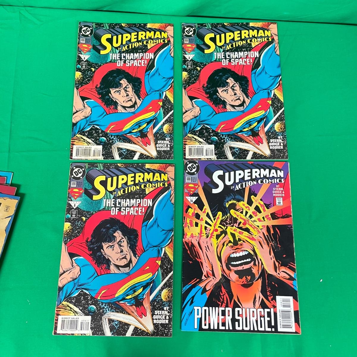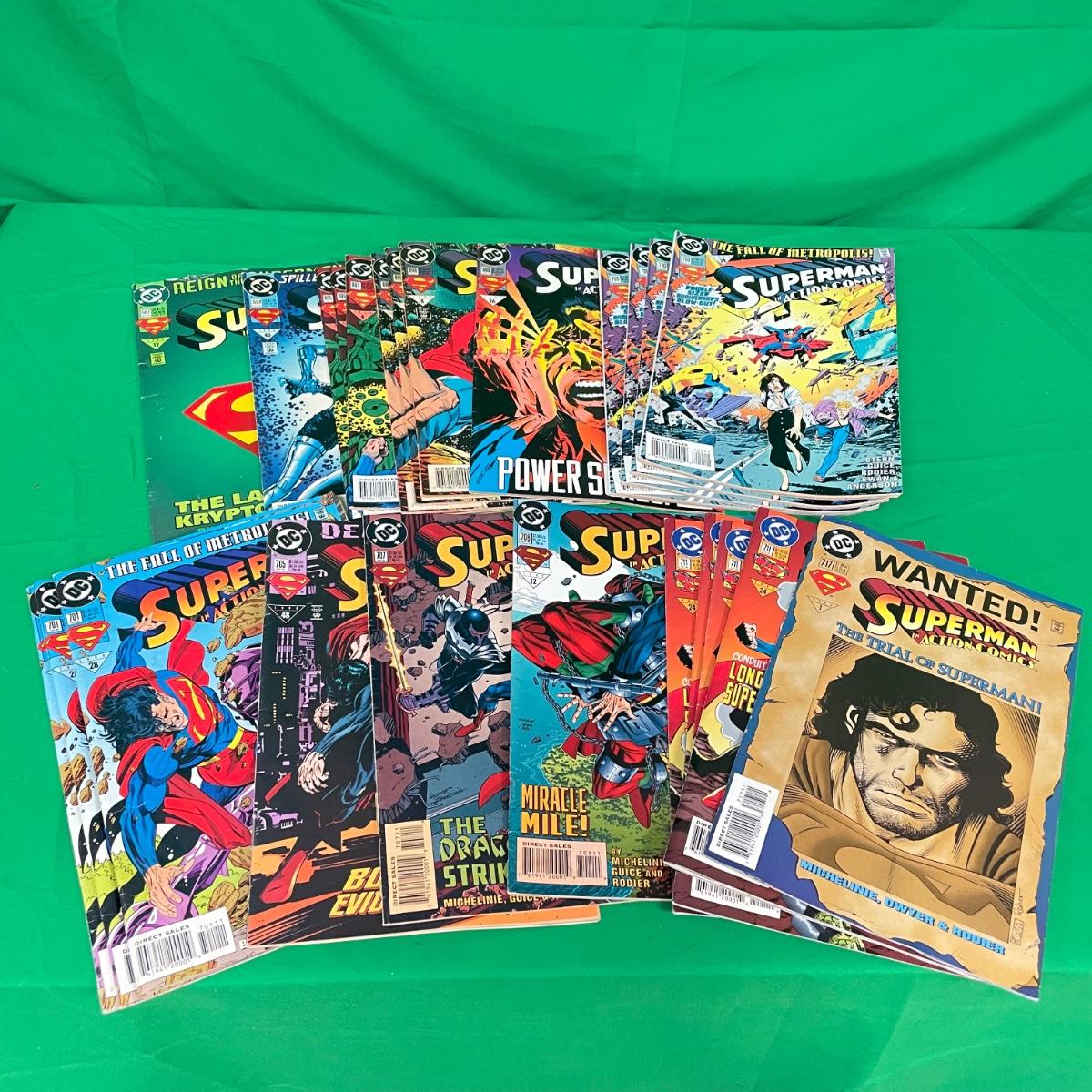 Over 25 issues of Superman in Action Comics beginning with #687 from June 1993 to #711 in 1995. A few issues have multiple copies, #695 has three issue with embossed foil covers. #687 has a stain on the cover. See images. Items are sold as-is. No returns or refunds. Please bid accordingly.