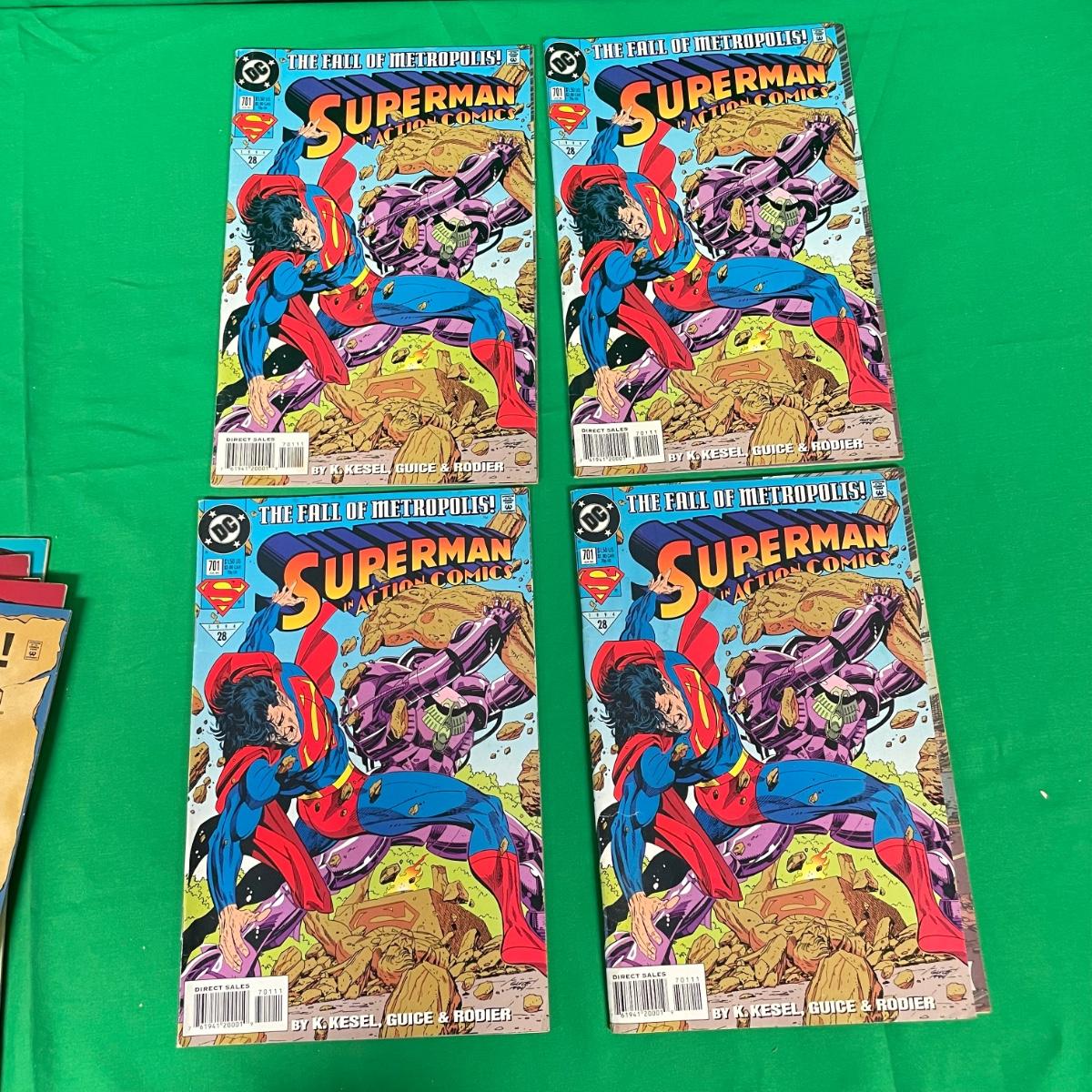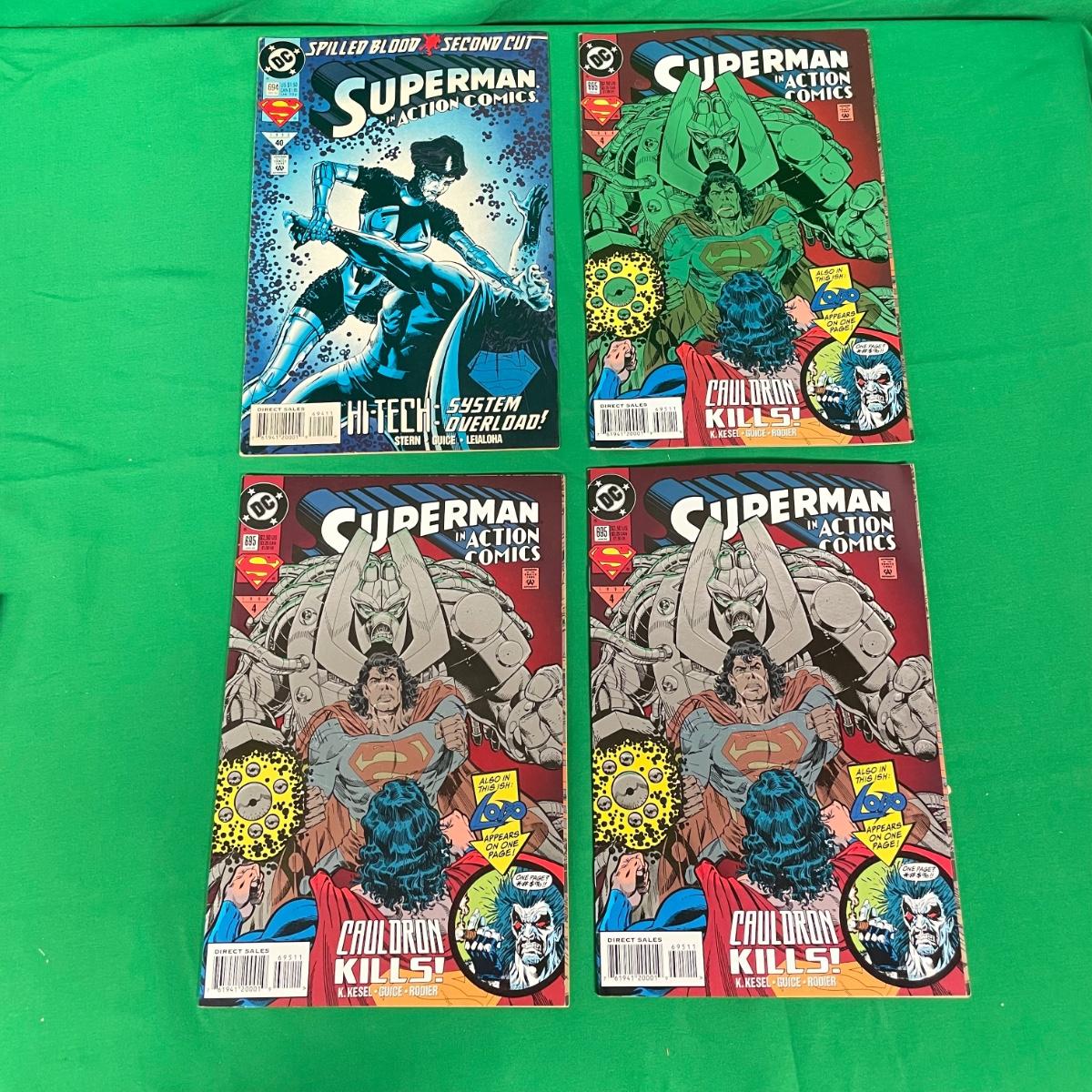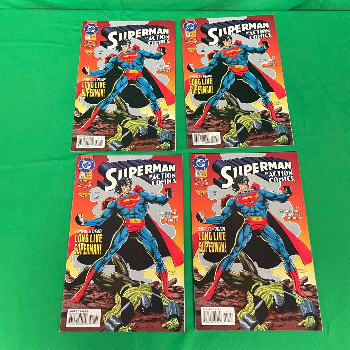 Over 25 issues of Superman in Action Comics beginning with #687 from June 1993 to #711 in 1995. A few issues have multiple copies, #695 has three issue with embossed foil covers. #687 has a stain on the cover. See images. Items are sold as-is. No returns or refunds. Please bid accordingly.