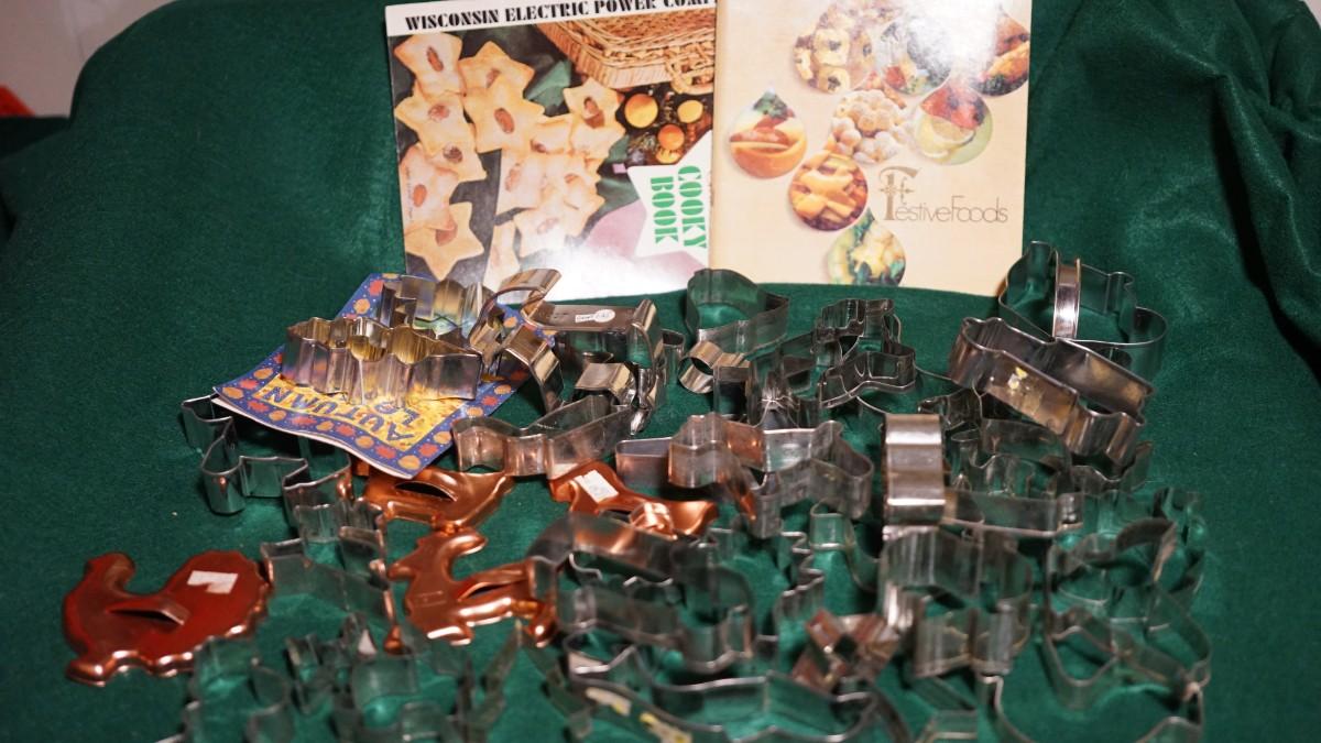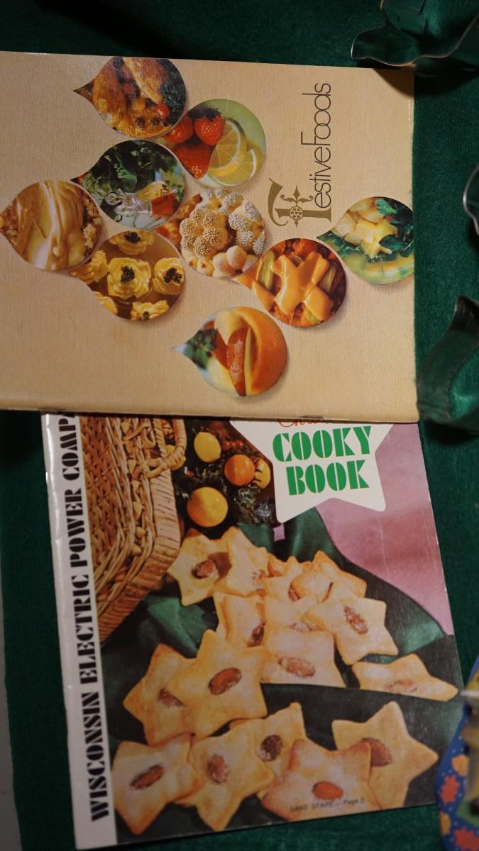OVER 30 COOKIE CUTTERS TO INCLUDE HOLIDAY, ANIMALS , CARS & TWO VINTAGE ELECTRIC CO. BAKING BOOKLETS