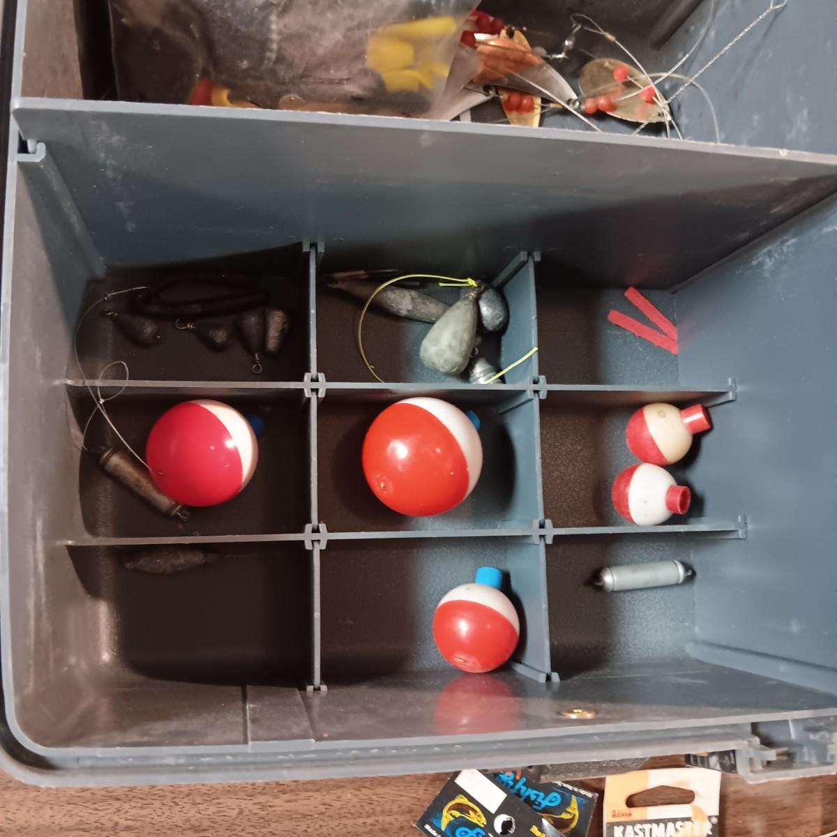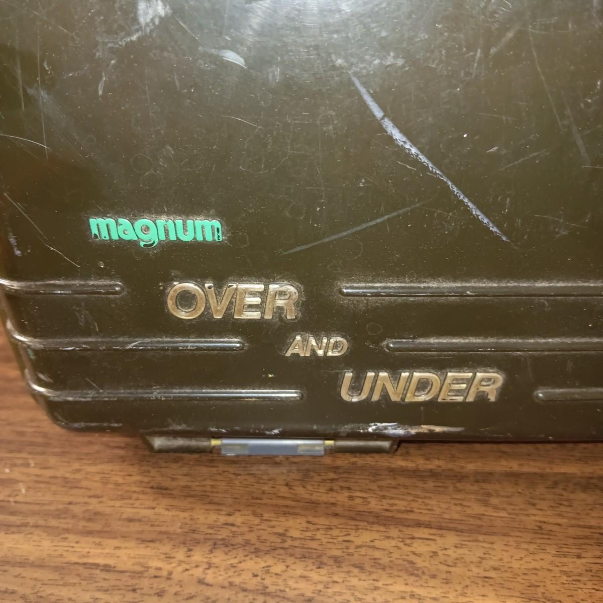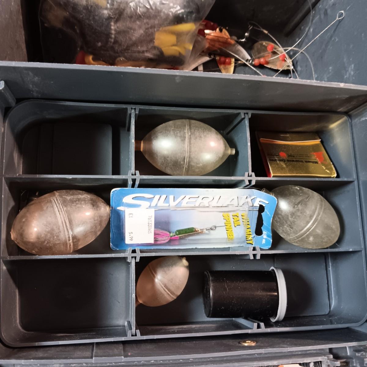 OVER AND UNDER PLANO TACKLE BOX WITH VARIETY OF TACKLE