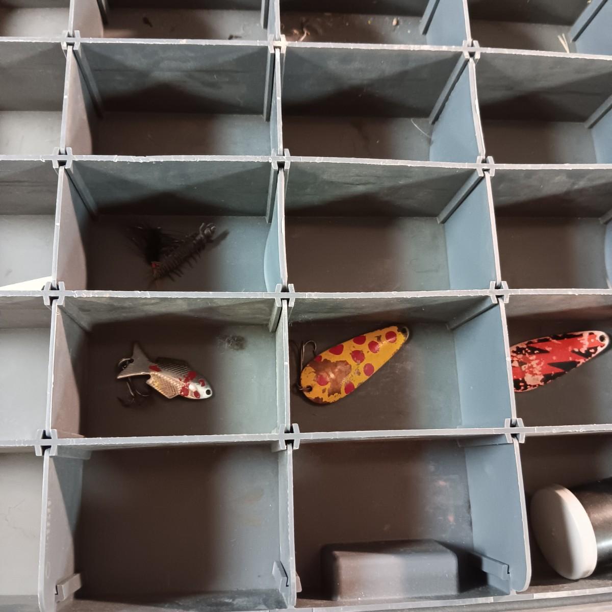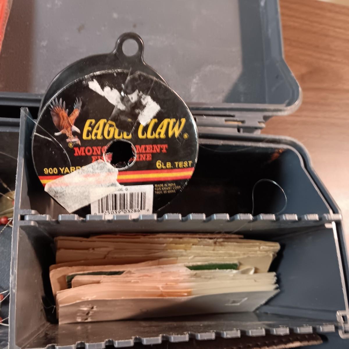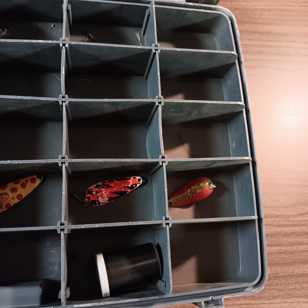 OVER AND UNDER PLANO TACKLE BOX WITH VARIETY OF TACKLE