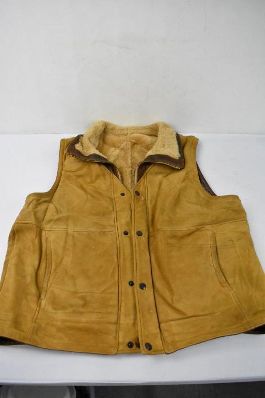 Overland Brown Leather Vest with Fuzzy Inside, Size 48