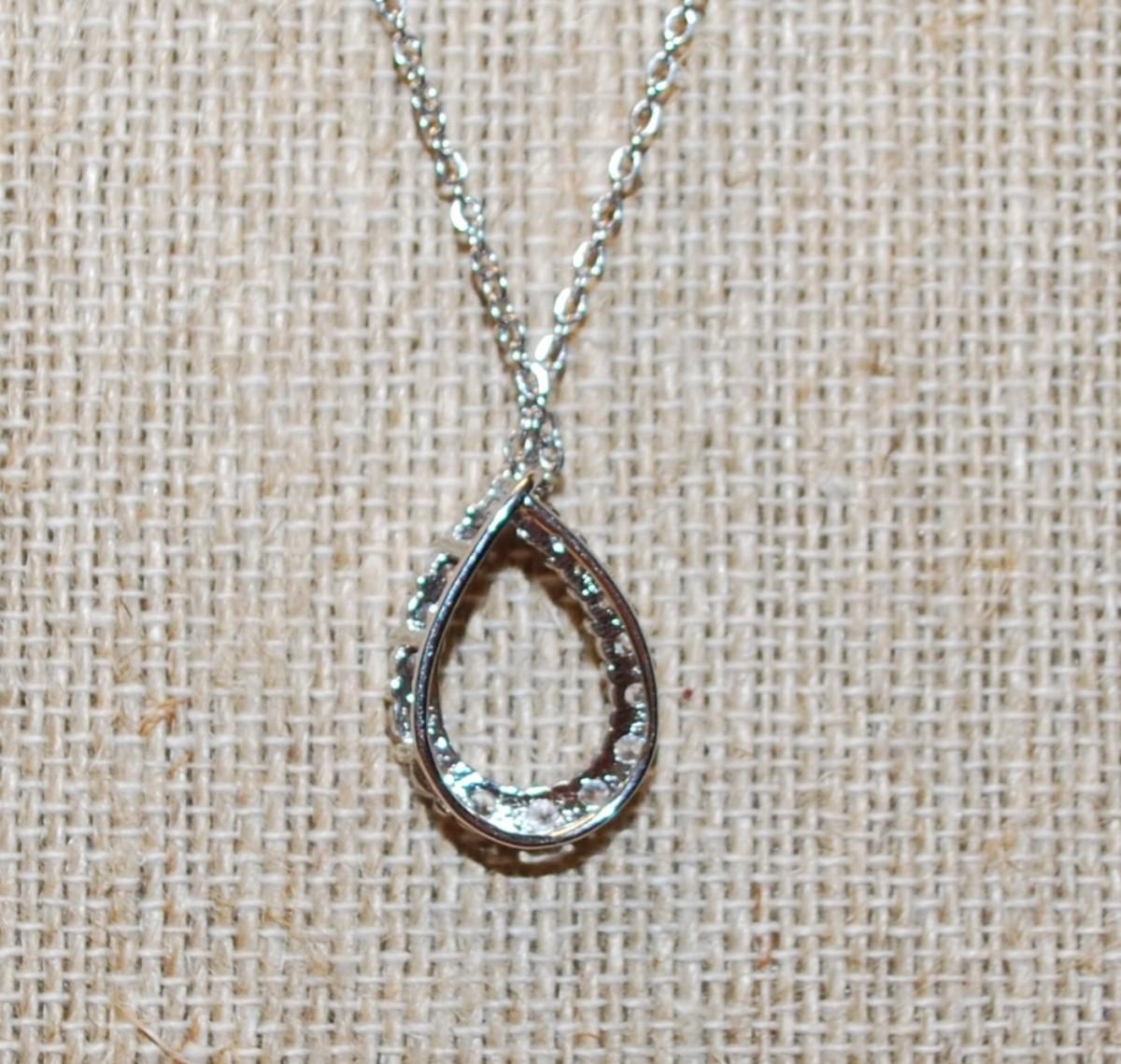 Overlapping Oval Diamond Style PENDANT (¾" x ½") on a Silver Tone Necklace Chain 17" L