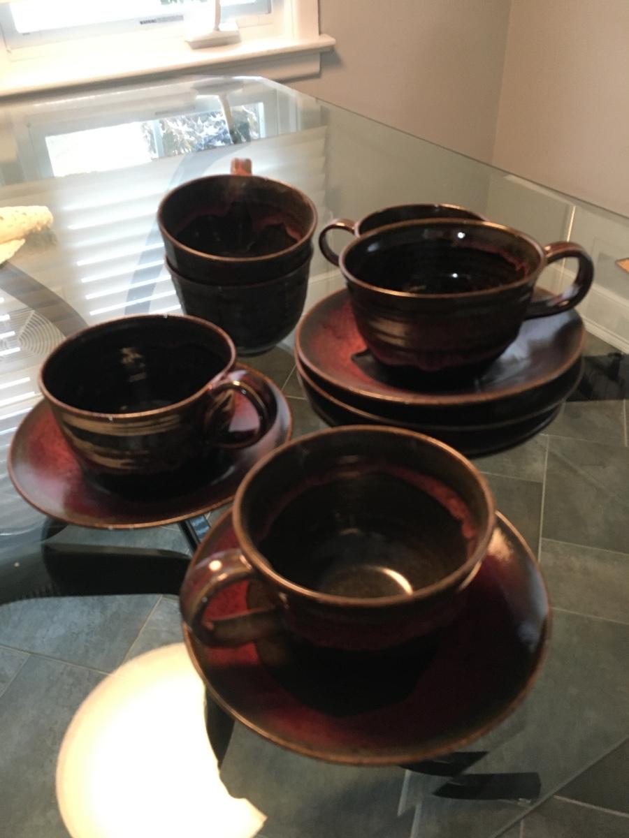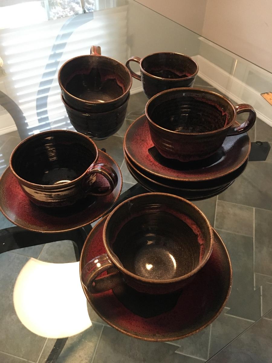 set of 6 oversized deramic coffee cups and saucers.