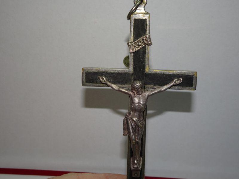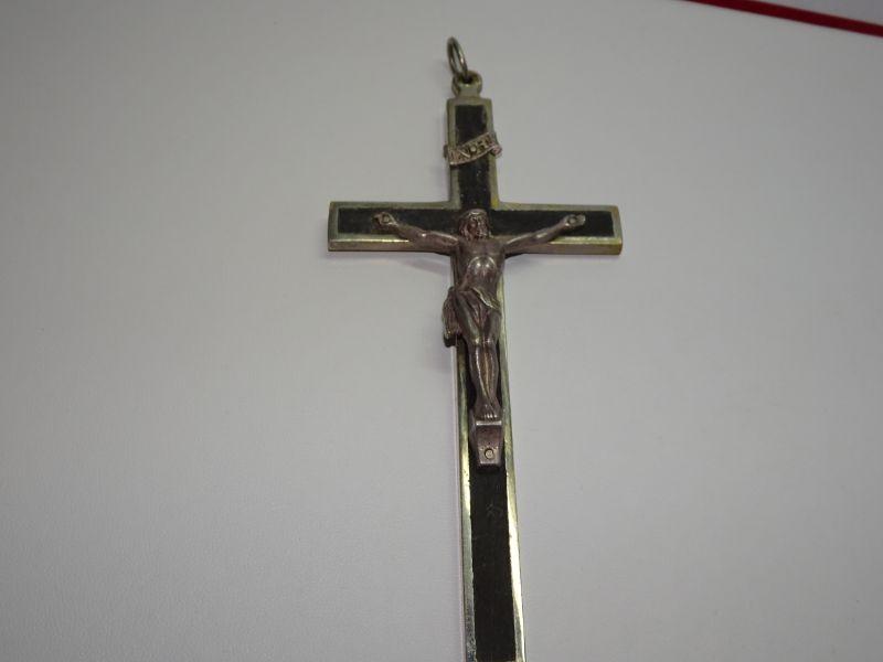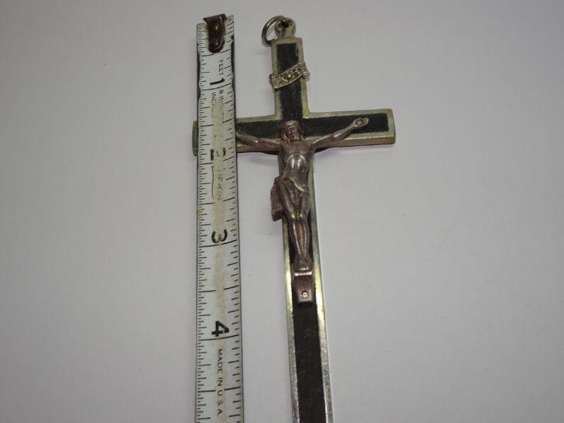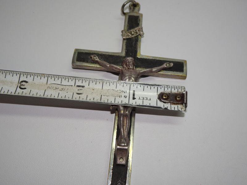 Antique French silver skull and crossbones necklace pendant cross crucifix pectoral cross Jesus Christ corpus, LARGE XL silver w ebony inlay