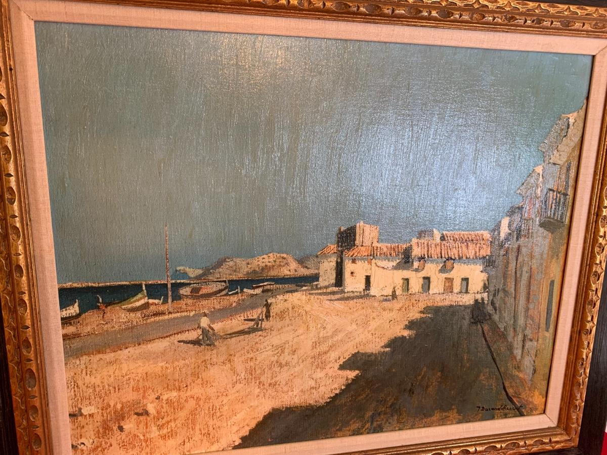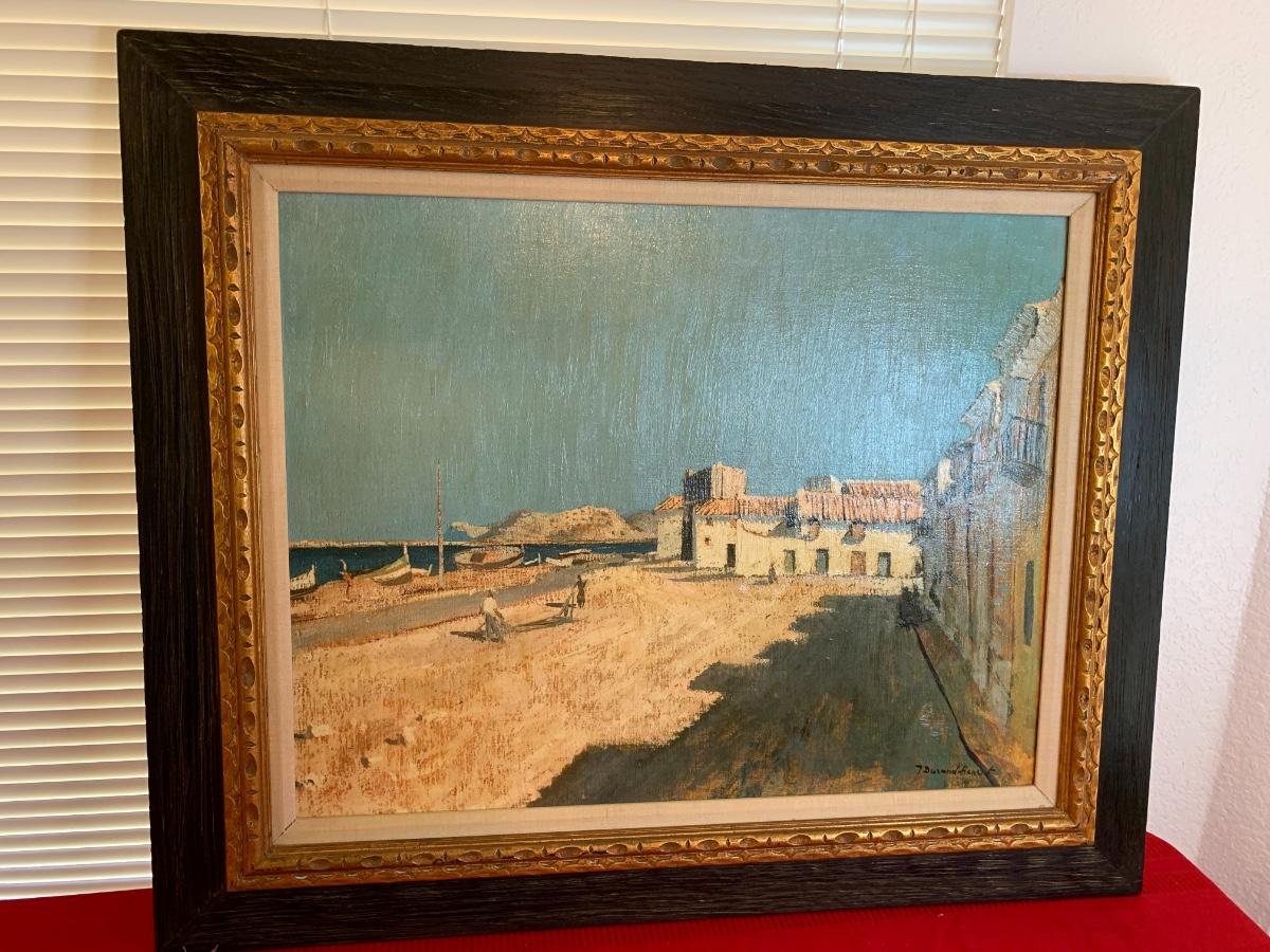 Large print (?) entitled “Beach at Noon” on canvas with heavy glaze. Signed J Durant Henrist. Great condition. Frame measures 38” x 31”