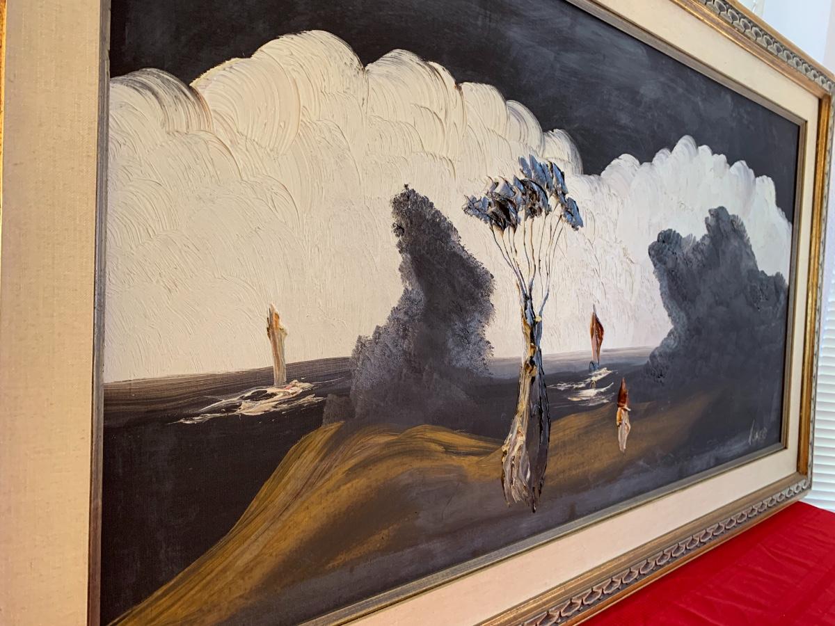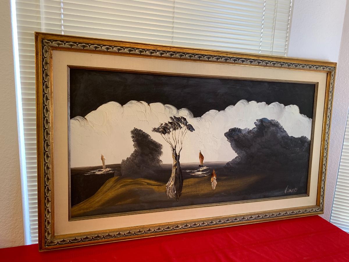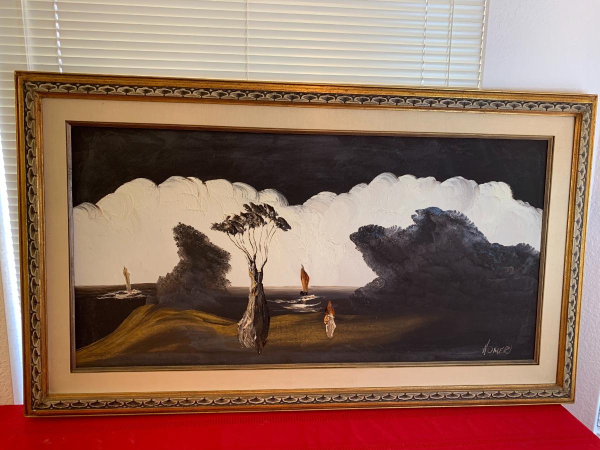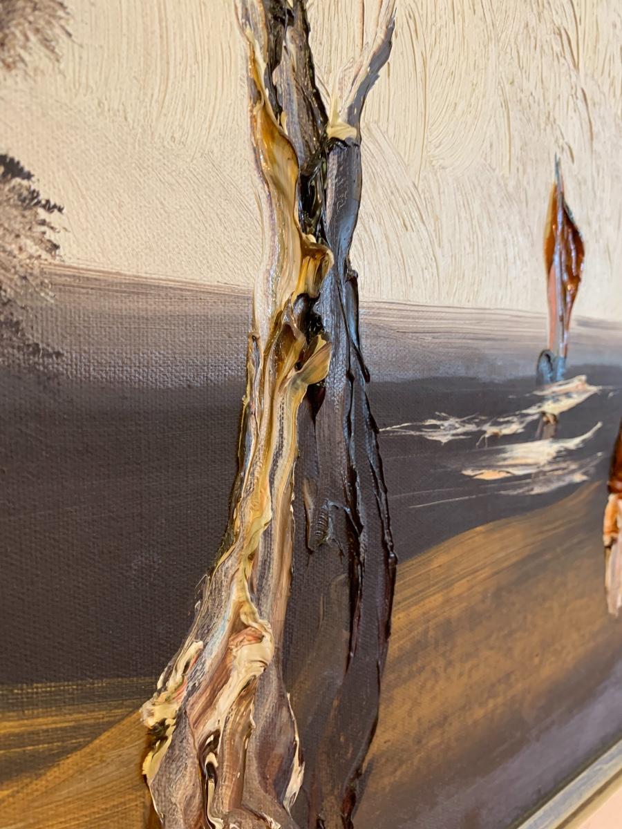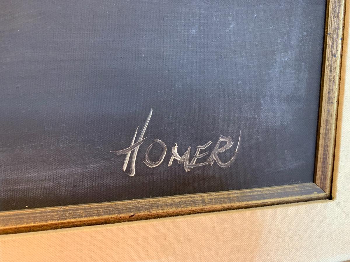 Very large Homer Costello original oil painting in impasto style. Landscape with figure by a tree. Signed Homer. Frame measures 55.5” by 32.5”