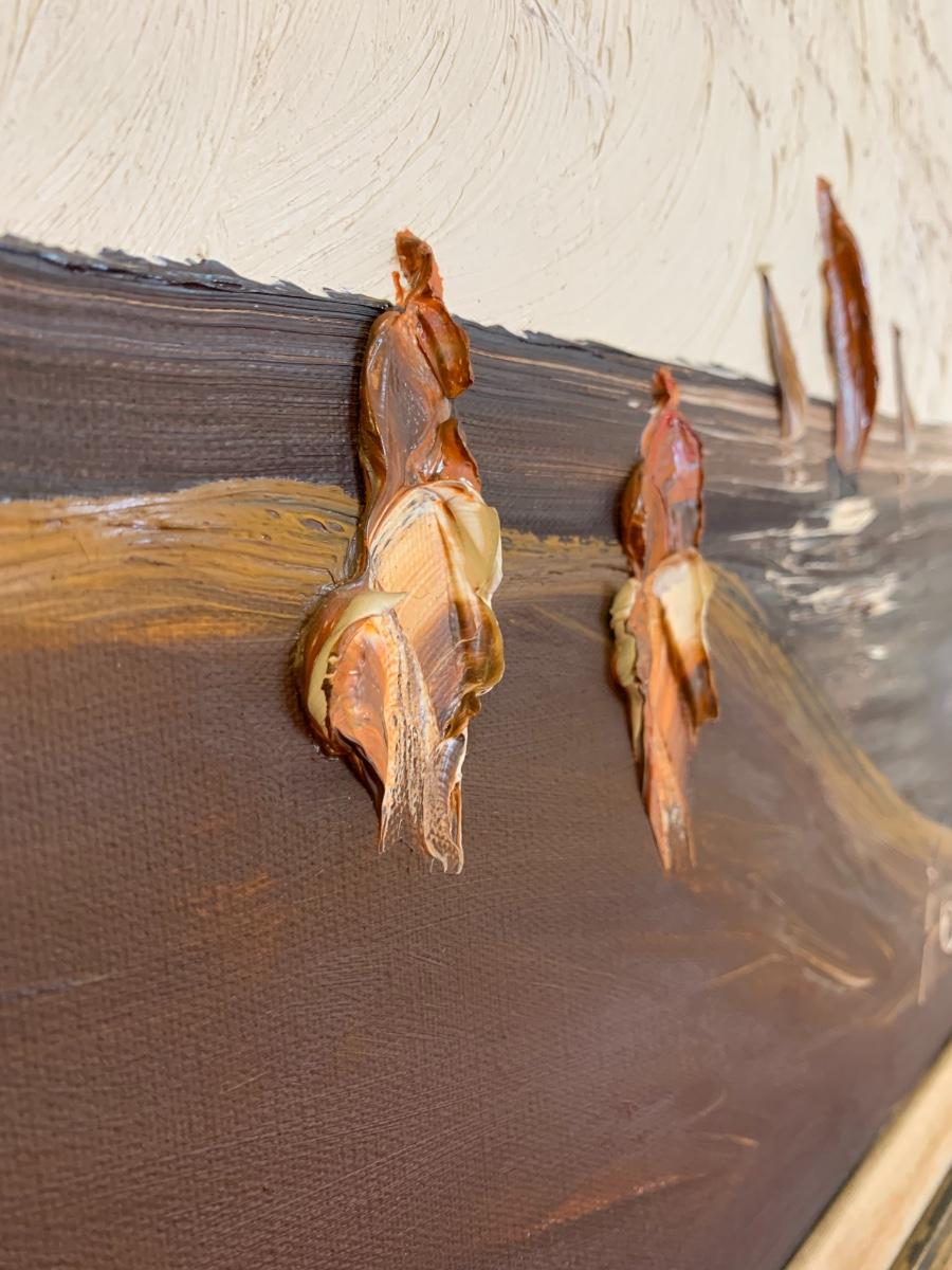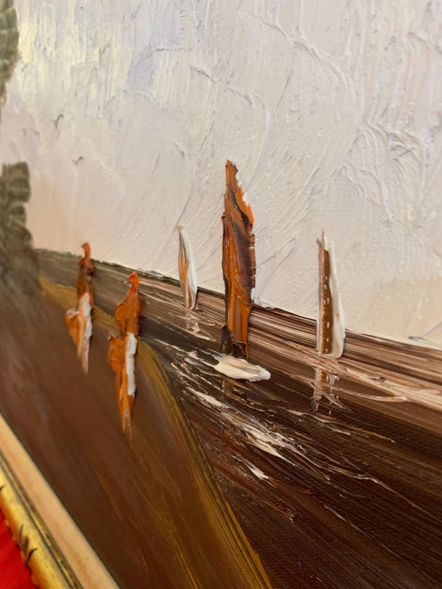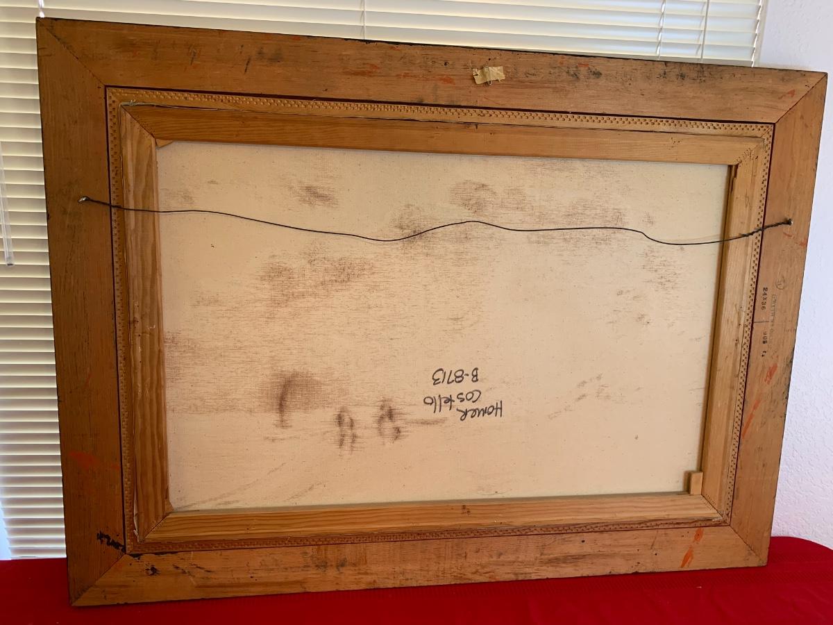 Very large Homer Costello original oil painting in impasto style. Landscape with figures on a beach. Signed Homer. Frame measures 44” by 32”