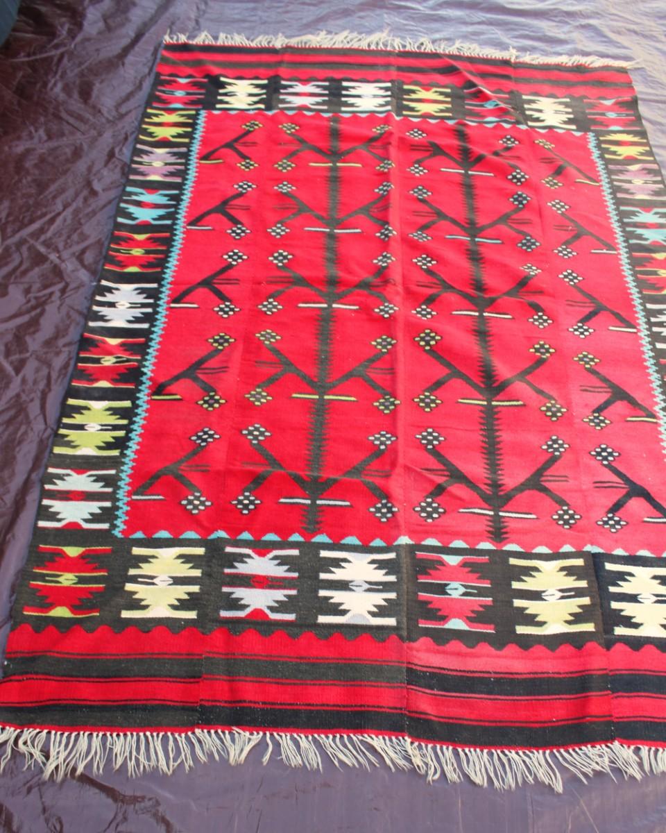 Oversized multi panel Turkish wool rug.  Hand made; Can be hung a  tapestry.
