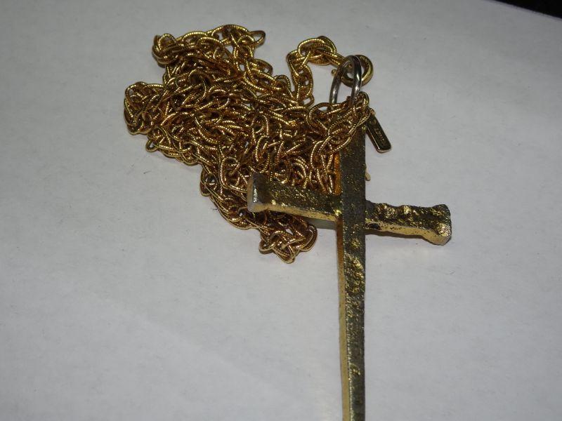 Over-sized Nail Cross, Religious Symbol, Gold Tone Cross, Monet Jewelry