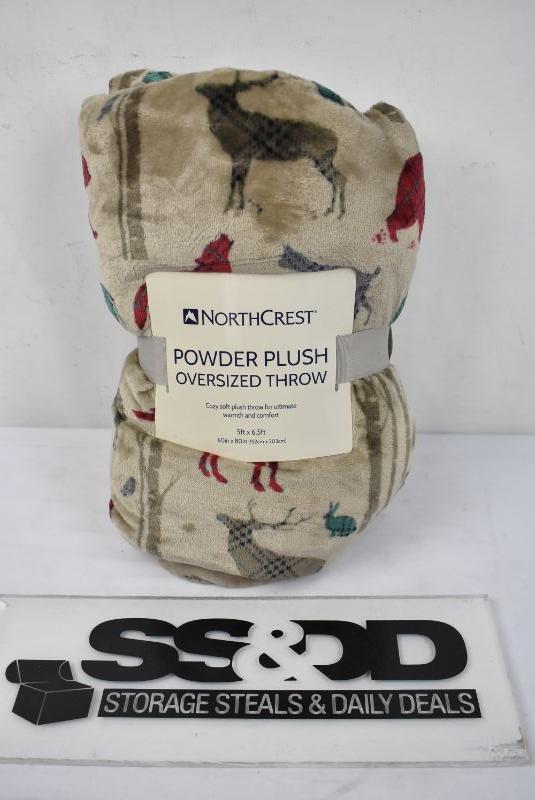 Oversized Plush Throw, 60"x80" Tan with Wildlife Print - New
